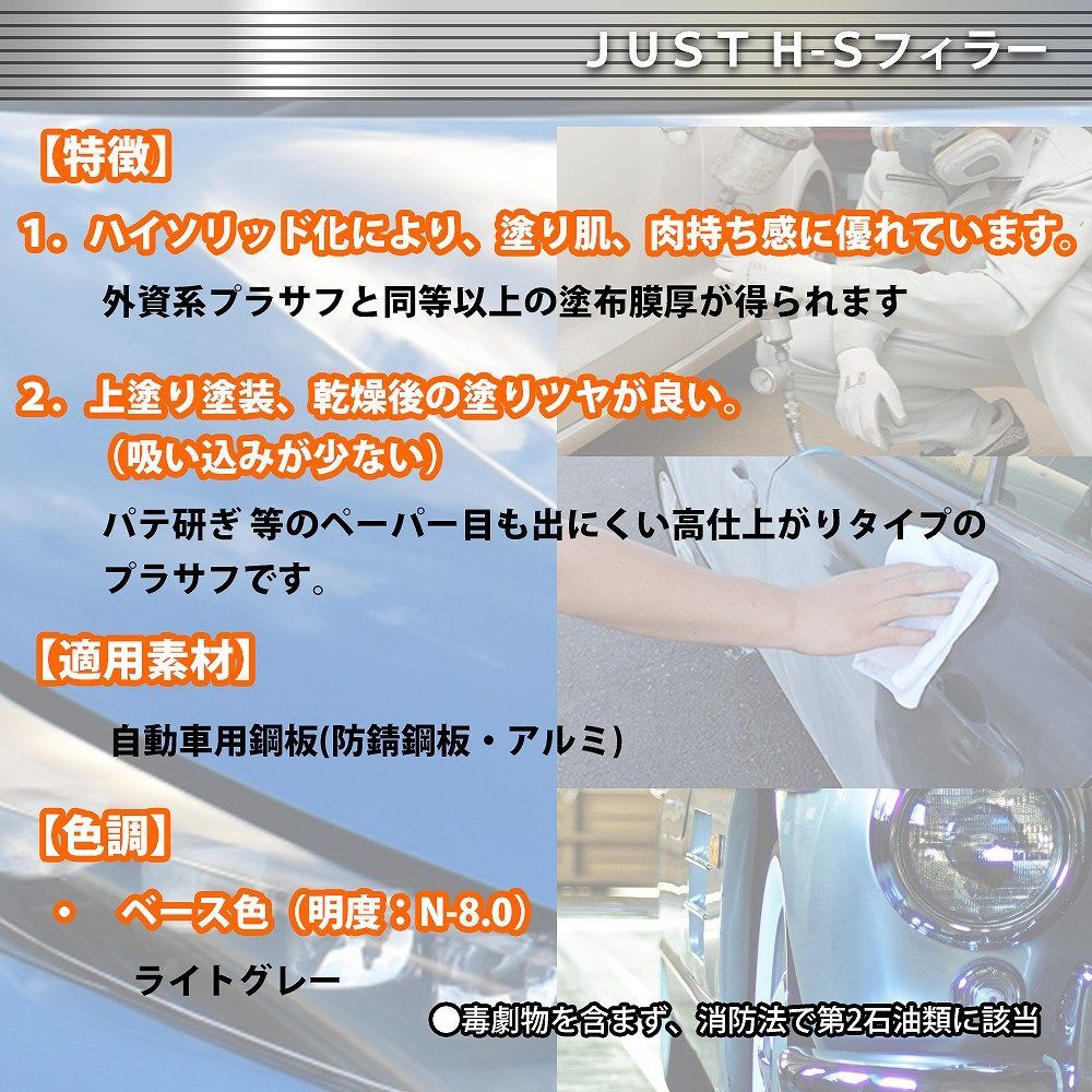 ノンサンディング! JUST H-S フィラー A 3kgセット(シンナー硬化剤付)/自動車用ウレタン塗料 サフェーサー プラサフ Z25