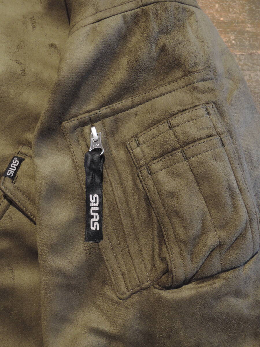 有名なフライトジャケットをモチーフとし、滑らかな質感と上品な光沢が特徴のフェイクスウェード素材使用フェイクスウェード素材を使用することによって、元々ナイロンのフライトジャケットとは全く表情が異なりカジュアルながらシックな印象になります。