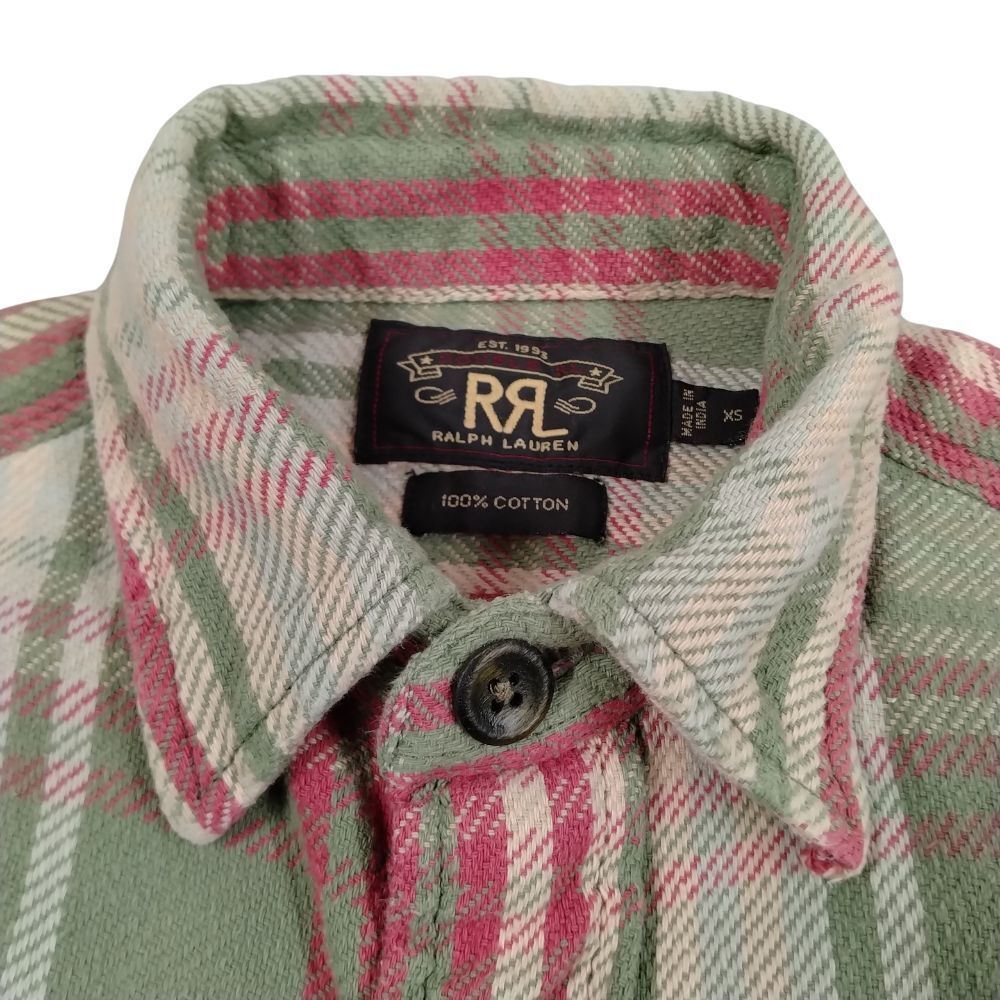 RRL ダブルアールエル チェック フランネルシャツ 長袖 オリーブ×レッド サイズXS 正規品 / 34198