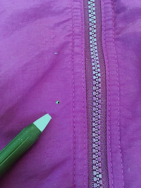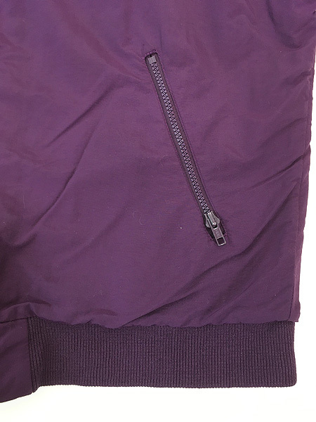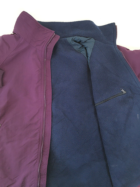 多少の防水性も期待できるハリのあるナイロン素材・裏地起毛フリース素材・袖内側中綿入りナイロン・段リブ。