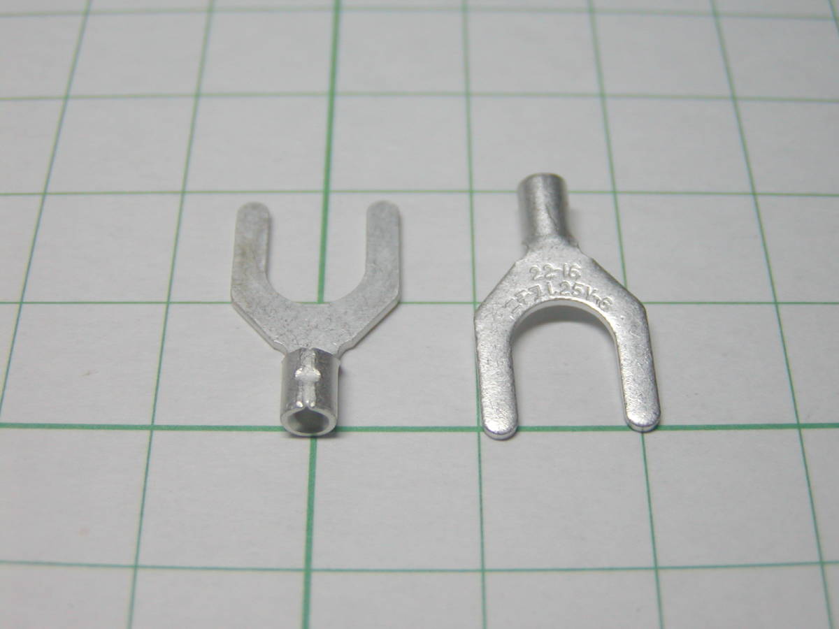 即決価格は 10個で120円です。 (数量1で、10個です。) 【品 名】 Y型 圧着端子 【規 格】 1.25Y sq-6 【サ イ ズ 】 電線の太さ= 0.25sq ~ 1.65sq迄 (22AWG ~ 16AWG) ネジ穴(6.4mm)= M6用 【使用方法】 専用の圧着ペンチが必要ですが、 ギボシ端子用のペンチでも代用可能です。 【特 徴】 ネジを緩めるだけで接続出来ます。(写真.3参照) 【写真.1】 出品物 1.25Ysq-6 【写真.2】 取り扱い端子 一覧 【写真.3】 使用例 ------------------------------- 類似品 ・ 関係品 ----------------------------------- ◆圧着端子 Y型 1.25Ysq-6 1個13円、 10個で120円 (出品物) ◆圧着端子 R型 1.25sq-6 1個13円、 10個で120円 ◆絶縁キャップ 1.25sq用 赤、黒、白、緑、黄、青 同色・10個で30円 ◆他のR端子 【写真.2】 下記 4種類有ります。 ・1.25sq-3 ・1.25sq-3.5 ・1.25sq-4 ・2sq-4 同種・10個で60円 ◆ほかにも多数、出品しております、下記より分類毎に検索出来ます。 ------------------------- 検索キー ------- rev. 2024/09/10 ------------------- カーボン抵抗 セメント抵抗 可変抵抗 電解コンデンサー 積層セラミック インダクター センサー 集積回路・TR ダイオード 発光ダイオード 拡散キャップ 電池ボックス プリント基板 端子台 コネクター スイッチ 測定器 電源関係 放熱器・FAN 電線 保護部品 USB関係 LiPo関係 照明関係 その他 熱収縮チューブ ⇒25cm 物 ⇒1m 物 ⇒割安 RC関係 中古品 送料無料品 休業日 | |