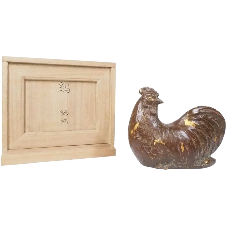 昭和期ビンテージ 樽谷清太郎 作 鶏 在銘品 鋳銅 ブロンズ 置物 共箱付(師:朝倉文夫 北村西望) 日本彫刻家連盟 記念品 1960年代 IKS612