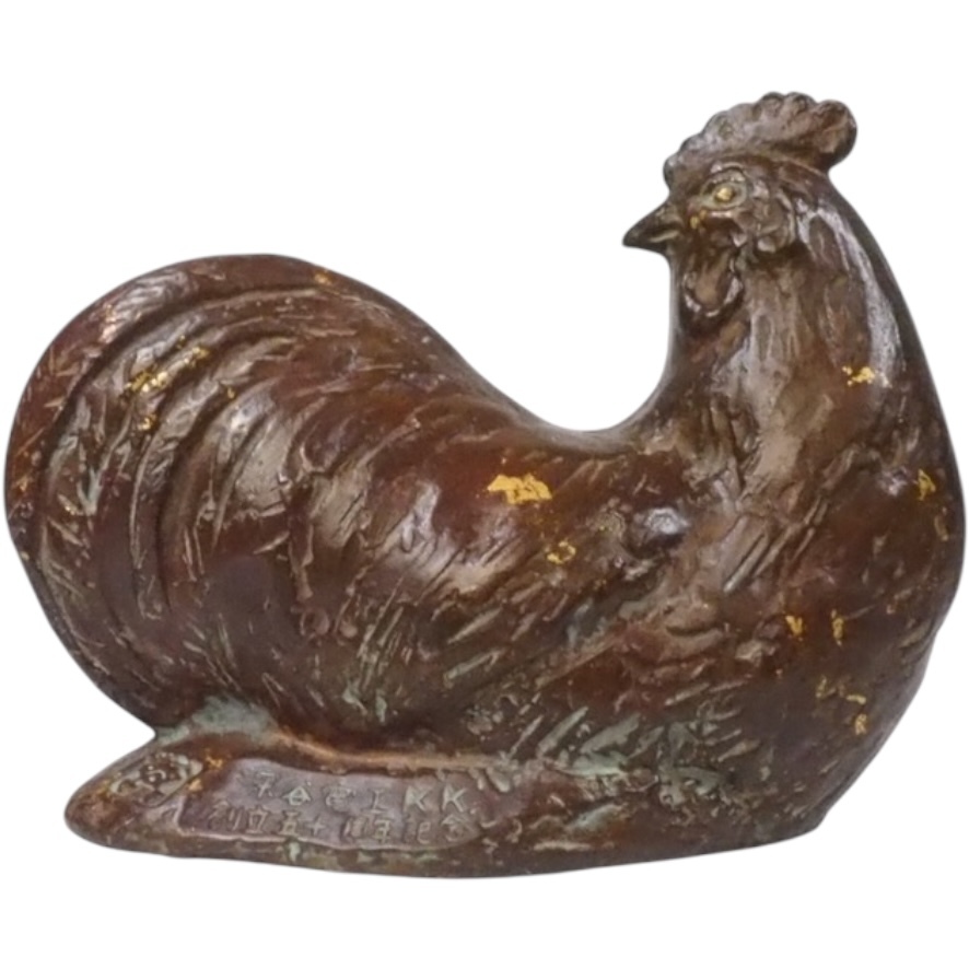 昭和期ビンテージ 樽谷清太郎 作 鶏 在銘品 鋳銅 ブロンズ 置物 共箱付(師:朝倉文夫 北村西望) 日本彫刻家連盟 記念品 1960年代