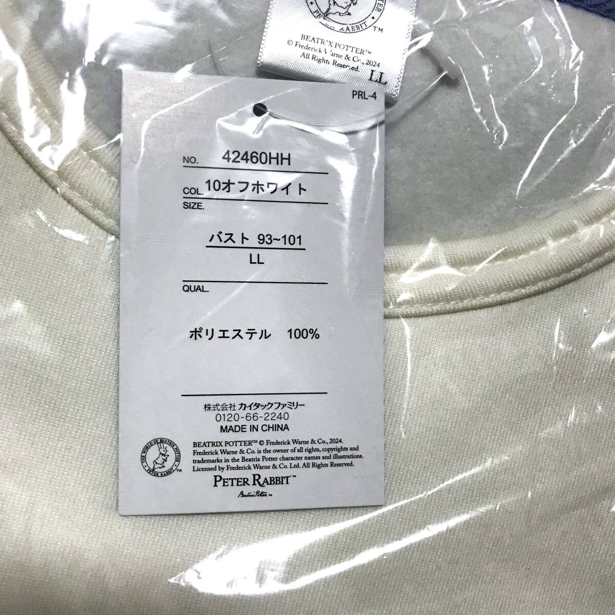 新品 タグ付き ピーターラビット パジャマ 上下セット レディースLLサイズ オフホワイト 白