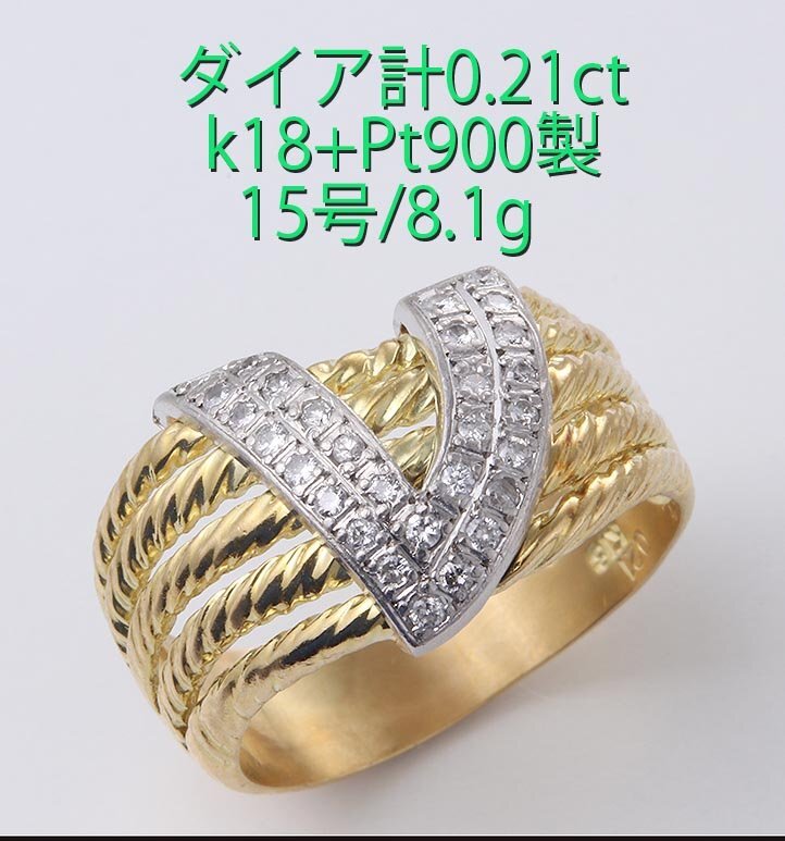 マテリアル | 天然ダイア合計0.21カラット(カラット刻印あり)、k18+プラチナ900製 |