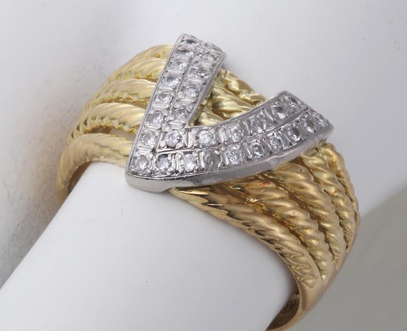 コメント | [[全ての商品に品質保証カードが付きますのでご安心ください]] ゴールドとプラチナのコンビリングです。大胆にプラチナ製の「V」をデザインが印象的です。勝利の「V」としての験担ぎにも良いかも知れません。 |