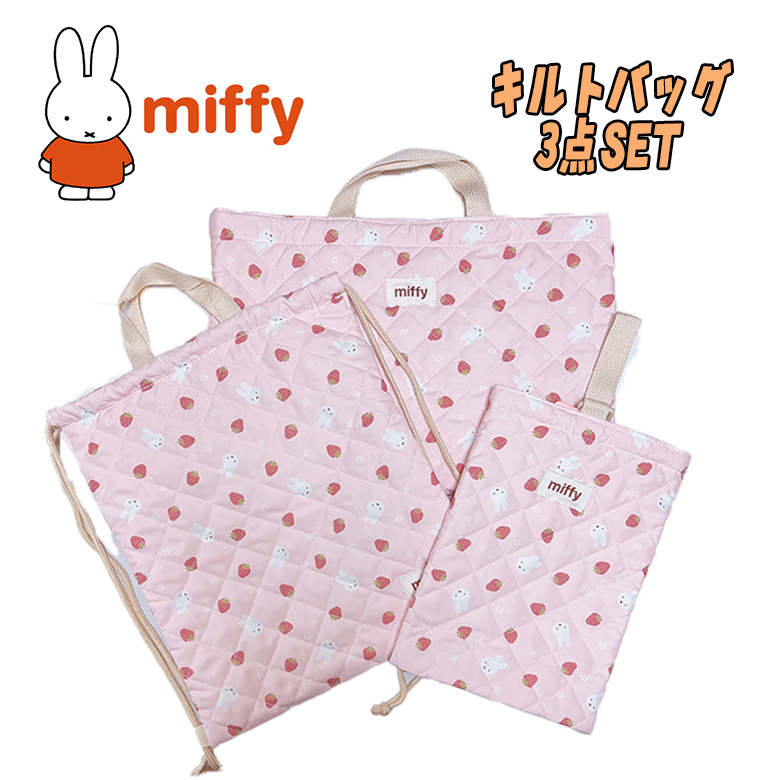 miffy ミッフィー キルトバッグ3点セット レッスンバッグ/ナップサック/シューズバッグ いちご 総柄 ピンク 04
