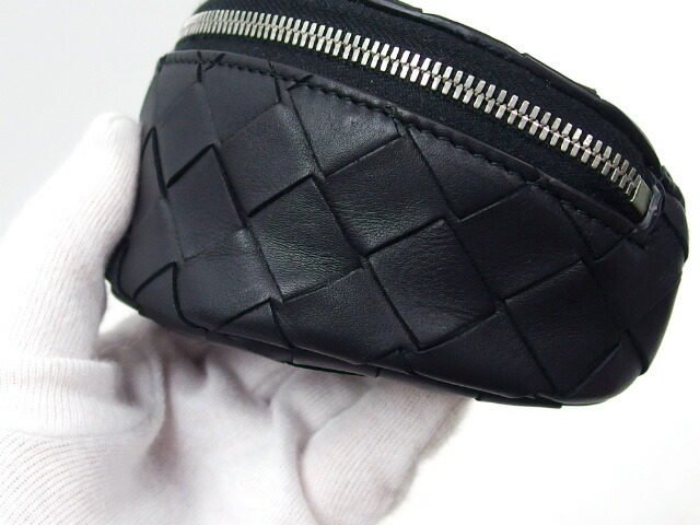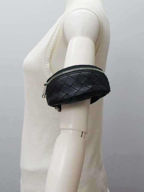 | 商品名 | リストポーチ アームポーチ ミニポーチ マルチポーチ イントレチャート レザー 編み込み ブラック(黒) ファスナー開閉 マットシルバー金具 レディース |