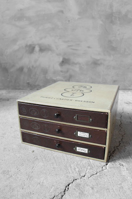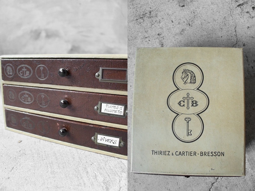 商品説明 岡山STAGEから出品します。フランスで買い付けましたアンティークのTHIRIEZ & CARTIER BRESSONスプールキャビネットです。THIRIEZ & CARTIER BRESSON(ティリエズ&カルティエ・ブレッソン)は、1825年創業の製糸工場『CARTIER-BRESSON』社と1857年創業のフランス北部の街リールの製糸工場『 J. THIRIEZ Pre & Fils 』が1925年に合併しT.C.B. (THIRIEZ & CARTIER-BRESSON)となり、1961年にDMCに買収されております。1900年代初期のフランス製で手芸洋品店で販促用として使用されていた製品です。木製に厚い紙がコーティングされており、カルティエ・ブレッソン社のトレードマークでもある馬のロゴ、そして、CとBの間に十字架ロゴがございます。アンティークならではの風合いが非常におしゃれです。ぜひお部屋のインテリアからショップ等の実用兼ディスプレイとしてお使いください。状態ですが、紙・木質劣化、小傷や擦れ、汚れ、破れ等といった使用感はありますが使用に差し支えがでるような目立つダメージもなく問題ない状態かと思います。ただあくまでアンティークになりますのでご理解いただける方のご購入をお願いします。 サイズ 高さ約17cm、横幅約31,5cm、奥行約36cmになります。 発送方法 保障の利く佐川急便の元払い140cmサイズ料金で行います。 コメント 店頭でも販売しております。タッチの差で売り切れた場合はご了承下さい。よろしくお願いします。 STAGEホームページ https://www.stage-stage.com/ |