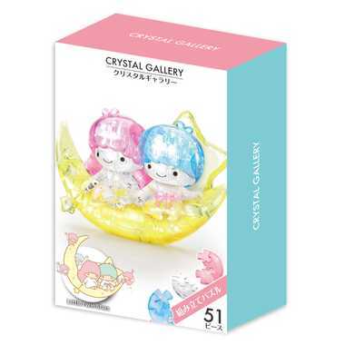 【クリスタルギャラリーリトルツインスタームーン】は、51ピース。組み立てると、三日月に乗ったキキとララのクリスタルフィギュアが完成します。室内で安全にじっくり時間をかけて楽しめて、完成後は場所を取らずお部屋のインテリアの一部としてもお使いいただけます。