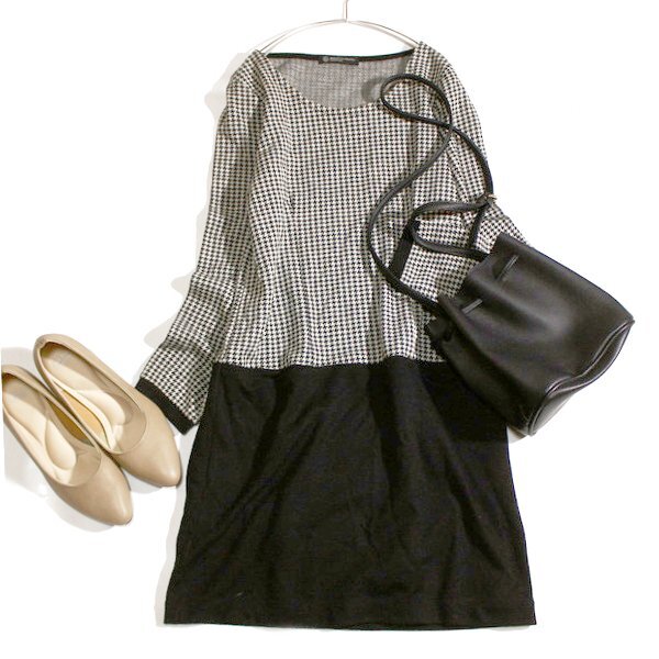 美品 ユナイテッドアローズ BEAUTY & YOUTH 千鳥柄 ストレッチ ワンピース F 秋 冬 25A01