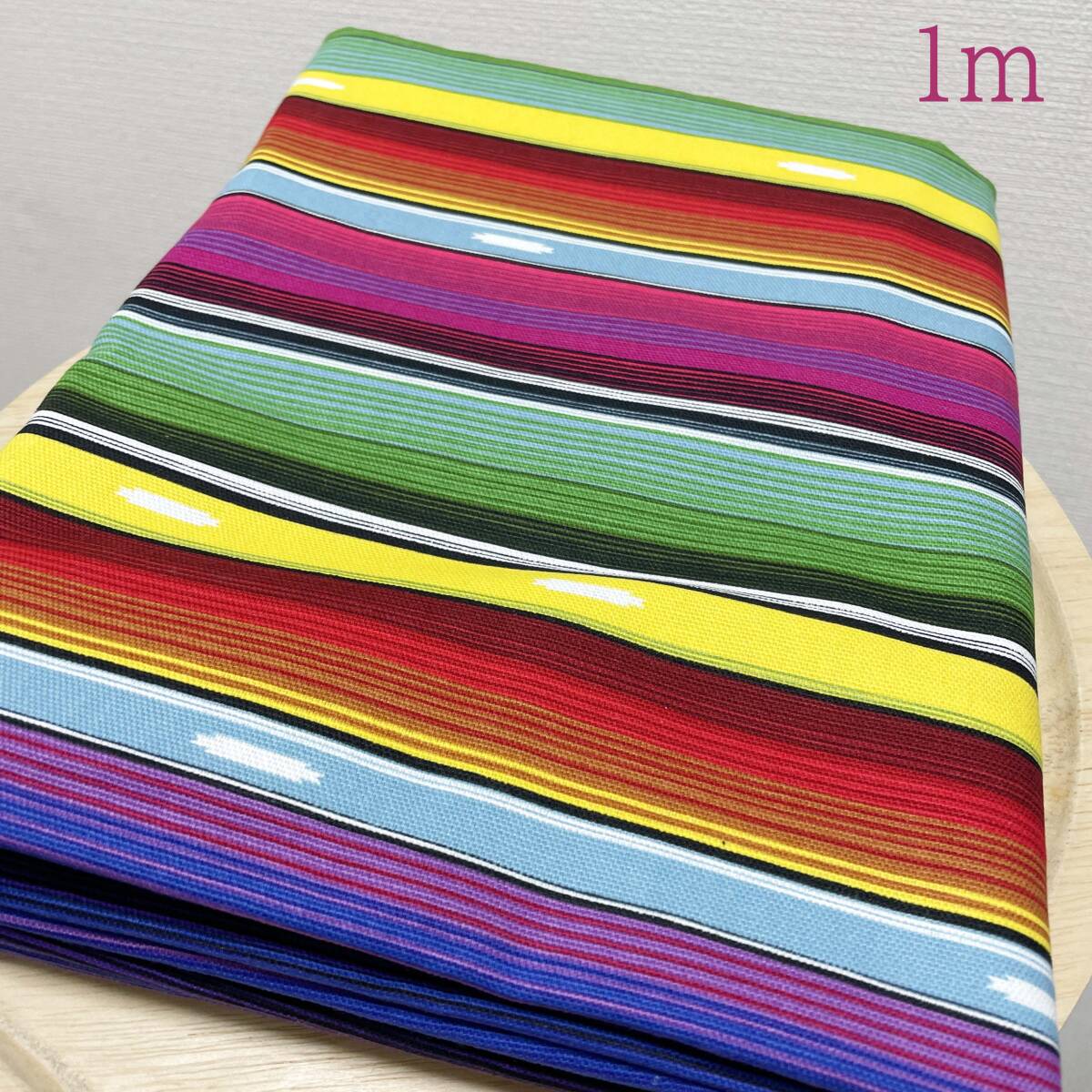 レインボー虹色マルチカラーUSAコットン生地1m布はぎれアウトドア系カラフル