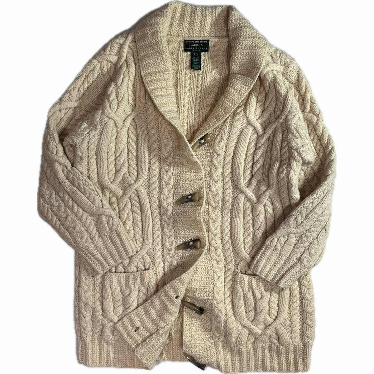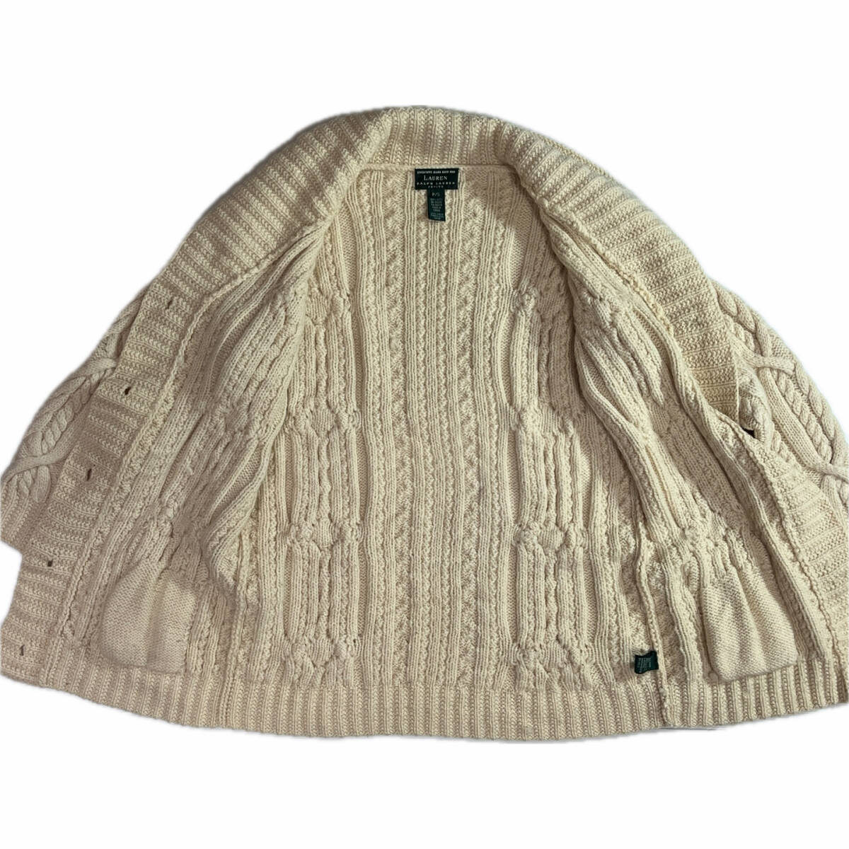 90s Ralph Lauren ラルフローレン メリノウール ショールカラー アラン編み ケーブルニットカーディガン レディースS アイボリー v24123023