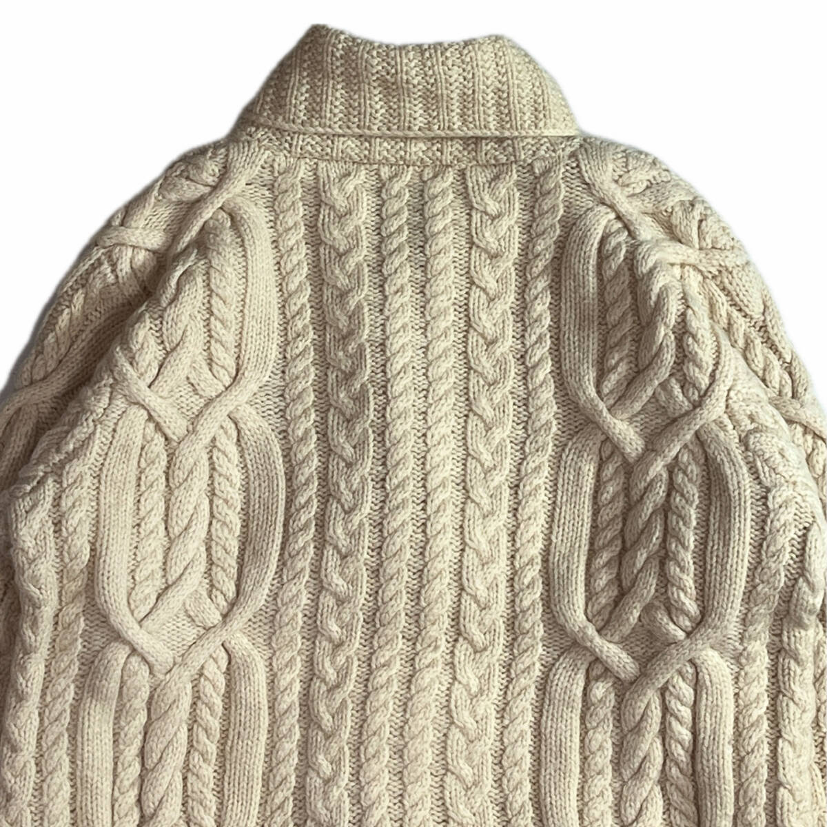 ・90s Lauren ローレン レディース メリノウール ショールカラー アラン編み ケーブル ハンドニット カーディガン