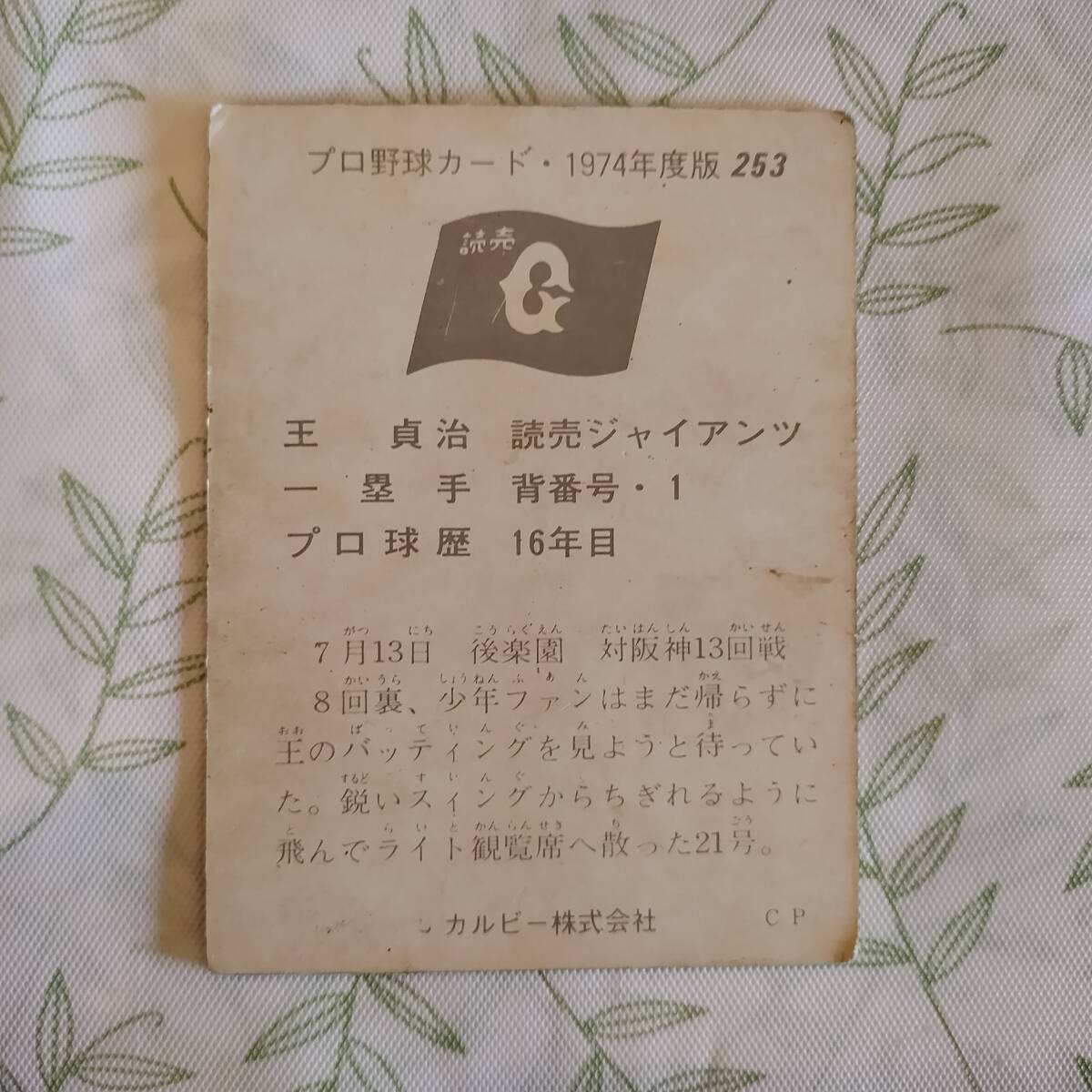 プロ野球カード 1974年度版 №253 王貞治 読売ジャイアンツ 一塁手 背番号1「7月13日 後楽園」 カルビー