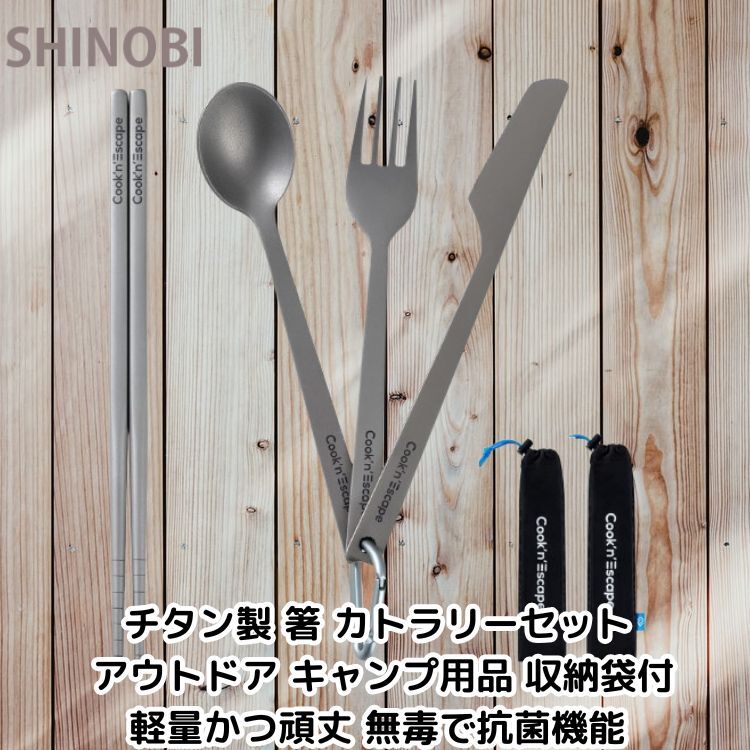 チタン製 箸 カトラリーセット アウトドア キャンプ用品 収納袋付 軽量かつ頑丈 無毒で抗菌機能 登山やキャンプ等のアウトドア活動に最適
