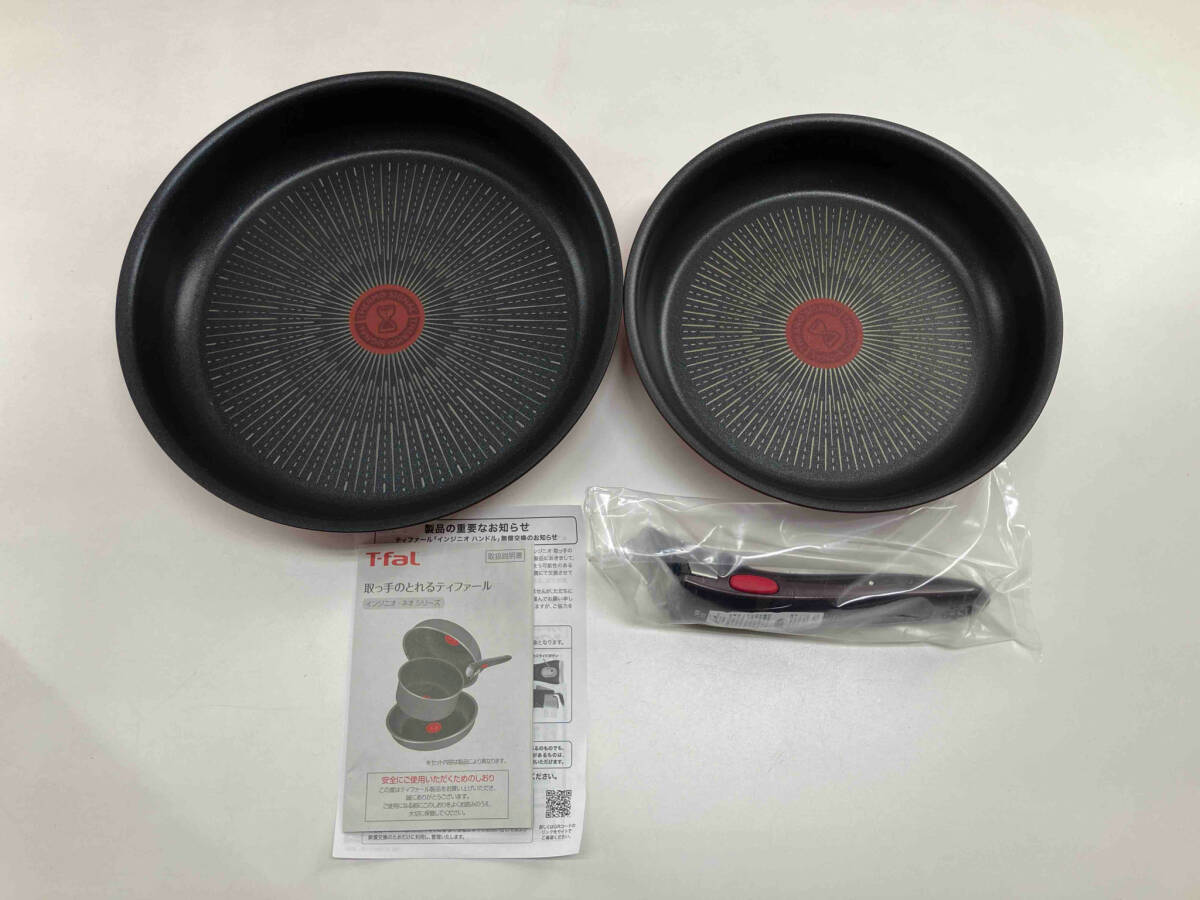 | 22cmと26cmのフライパンと、専用取っ手のセットです。 保管時に微細の汚れが付く場合がございます。 |