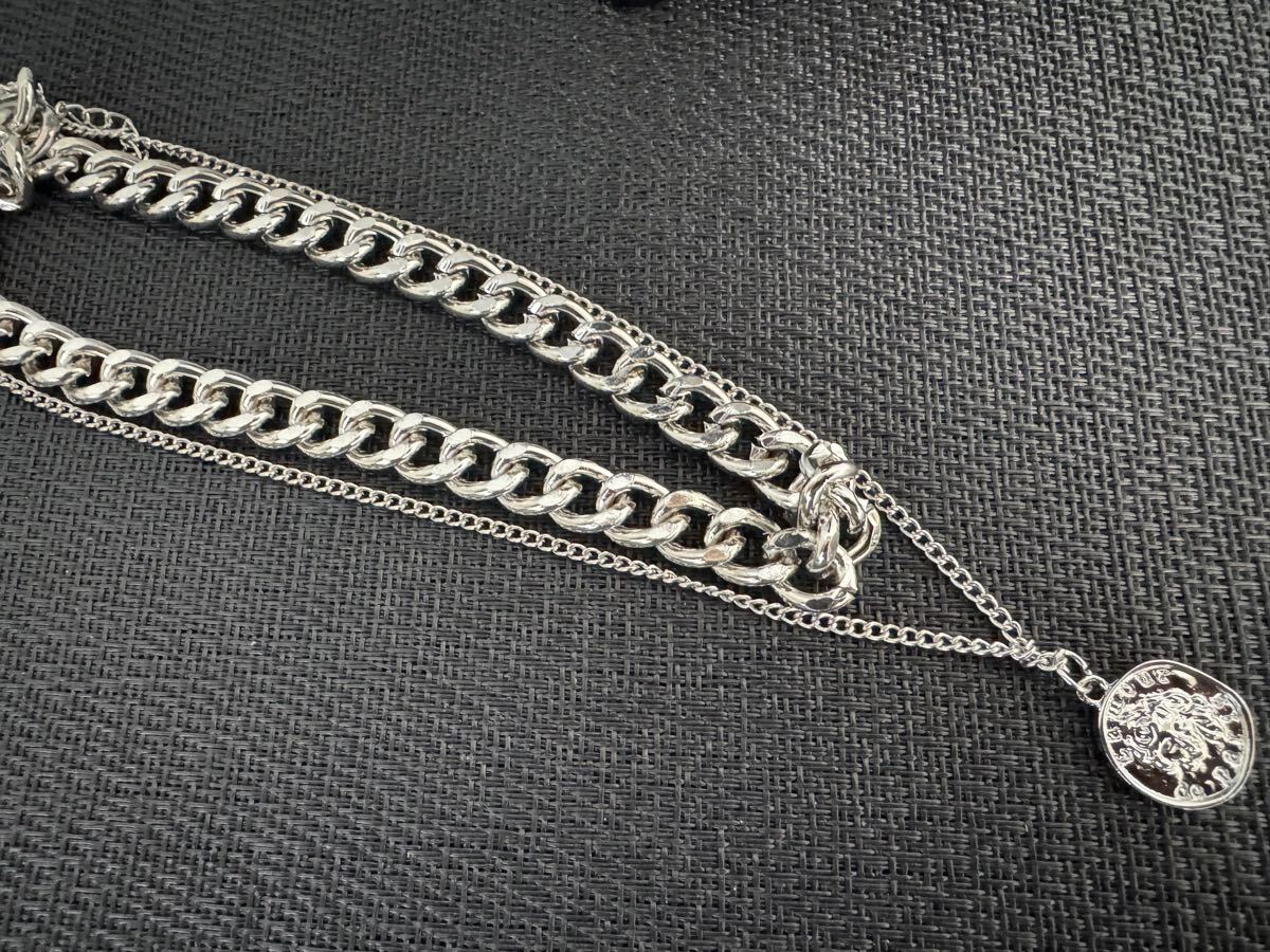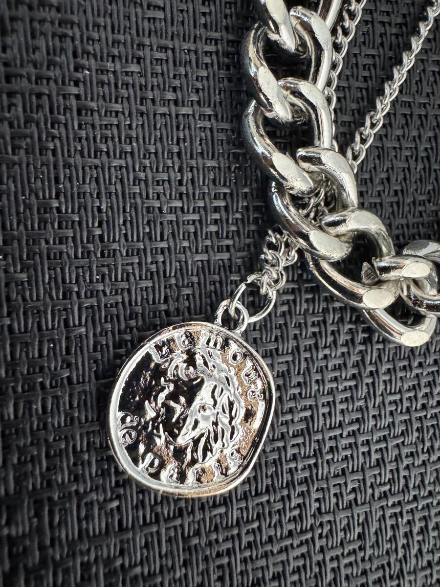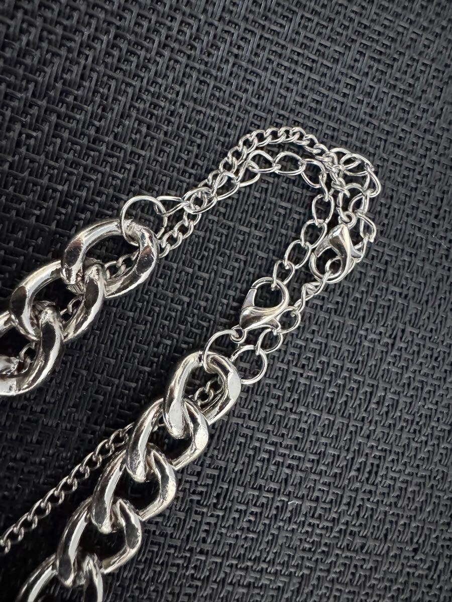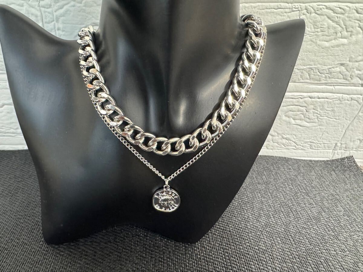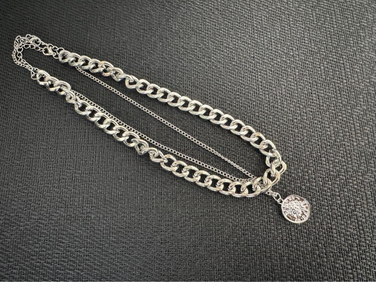 二重 ネックレス  ペンダント チェーン  シルバー系 メンズ  アクセサリー 未使用 A-1598