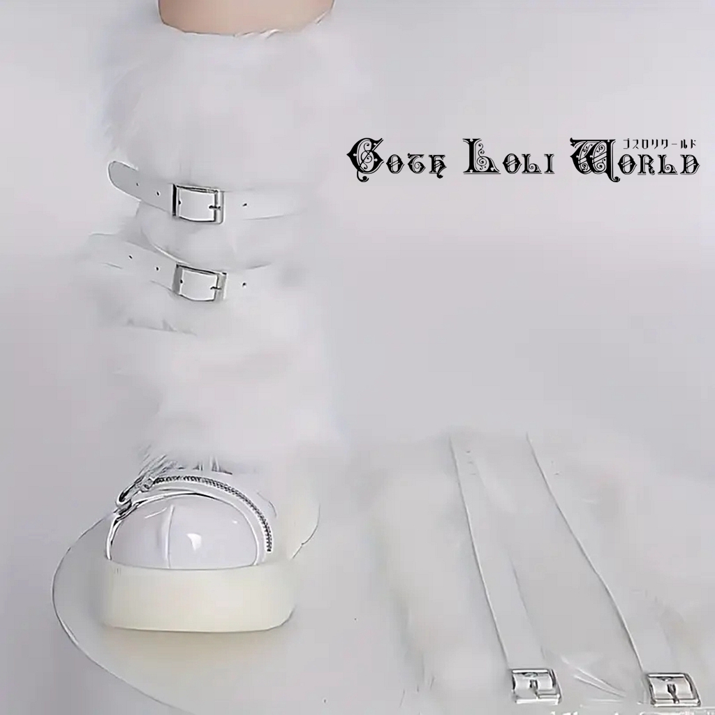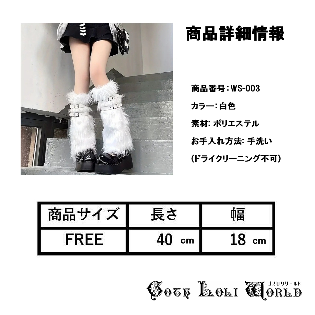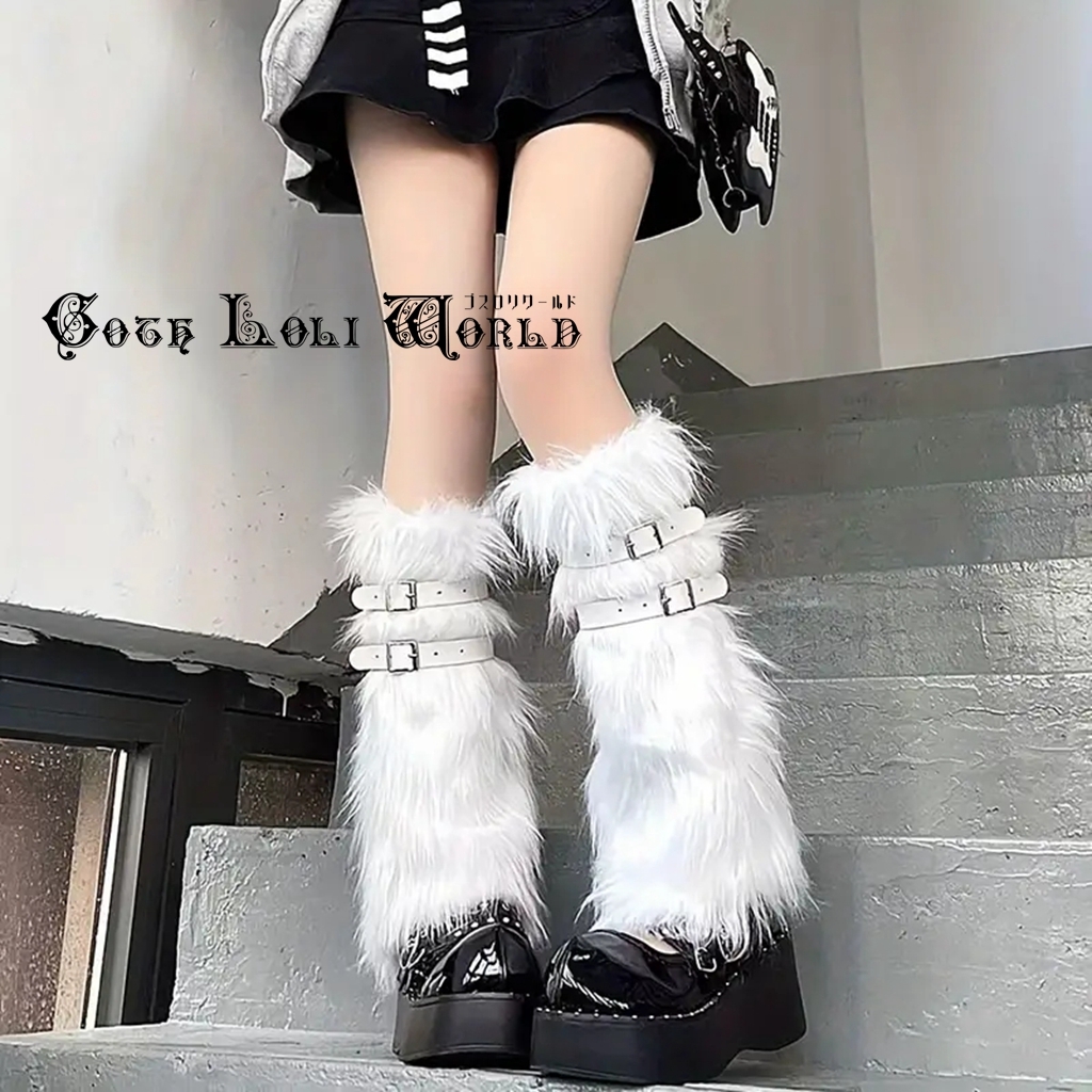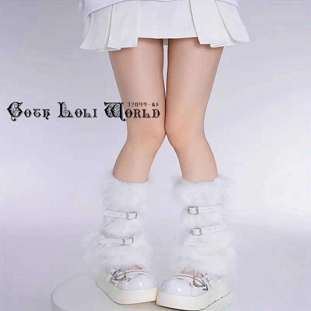 CE-WS-003WH ふわふわ ベルト付 レッグカバー レッグウォーマー ホワイト 白色 レディース ファッション ロリータ ゴスロリ 地雷系
