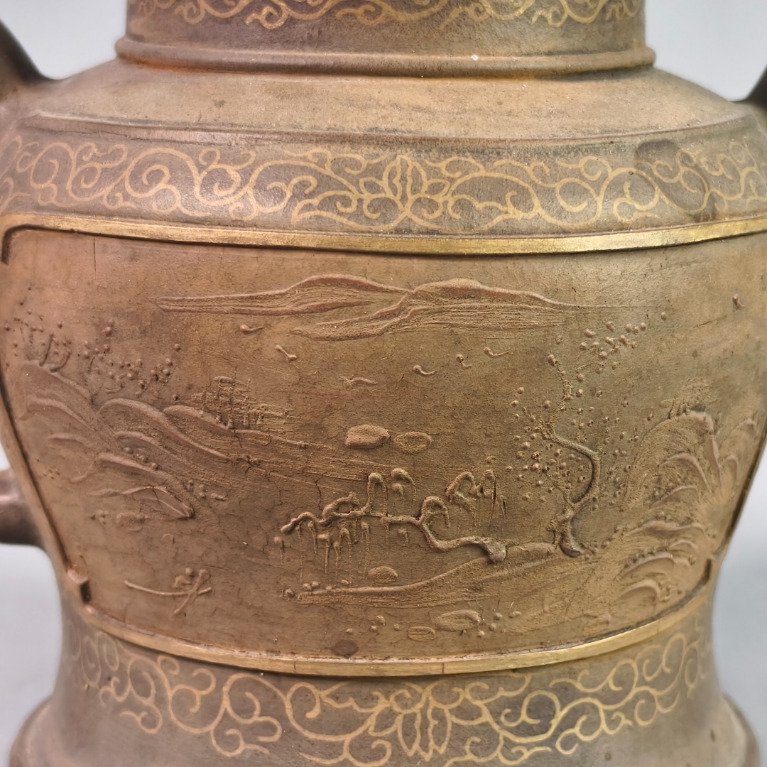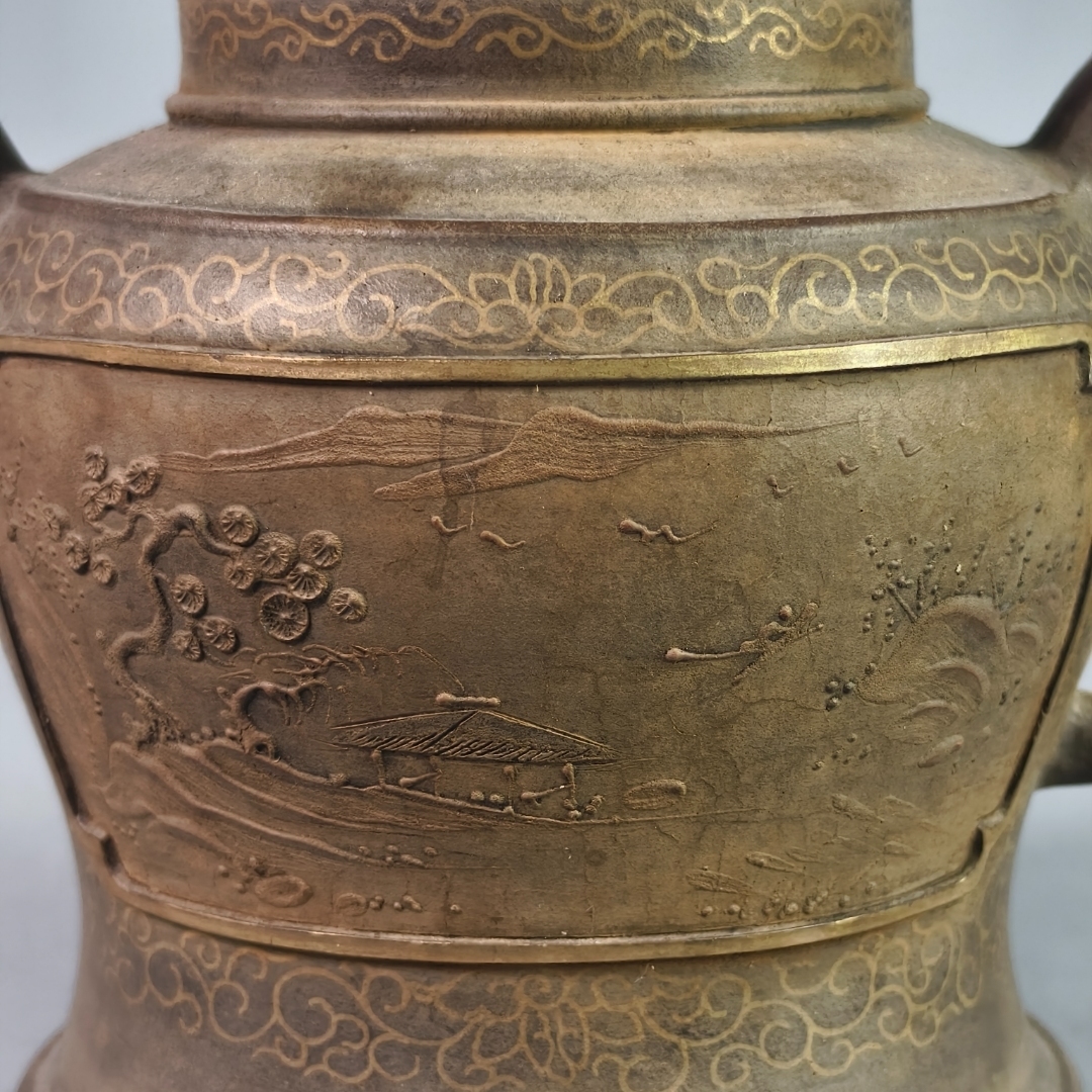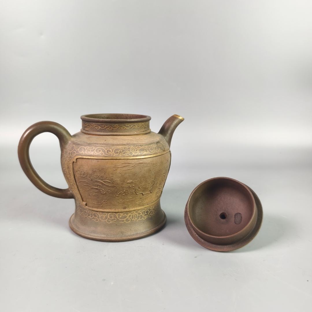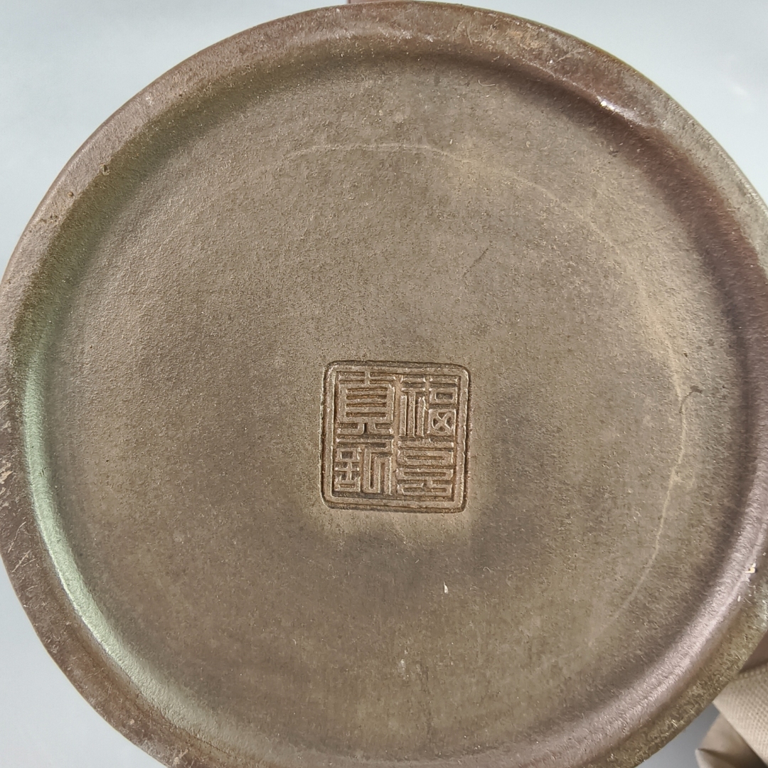 在銘:福亨真製 時期:清時代 寸法:長幅14x 16cm 状態説明:この紫砂壷の造形周正古風で、温厚で荘重で、品相完備して、収蔵は極めて良くて、 水を24時間はり、もれませんでしたが、 のちのご使用による水もれ、 破損は保証できませんので、ご承知ください。 使用によるシミ、スレ、汚れ、小アタリなどや、 くっつき、窯スジ、窯へこみなどもご承知の上入札お願いします。 ※実物は撮影する,掲載写真をご確認ください。 ※モニターの具合により実際の色と異なる場合がございます。 ご了承ください。 ※サイズは出来る限り正確に測っておりますが、多少の誤差が生じる場合が御座います。ご了承の上、ご入札をお願い致します。 |