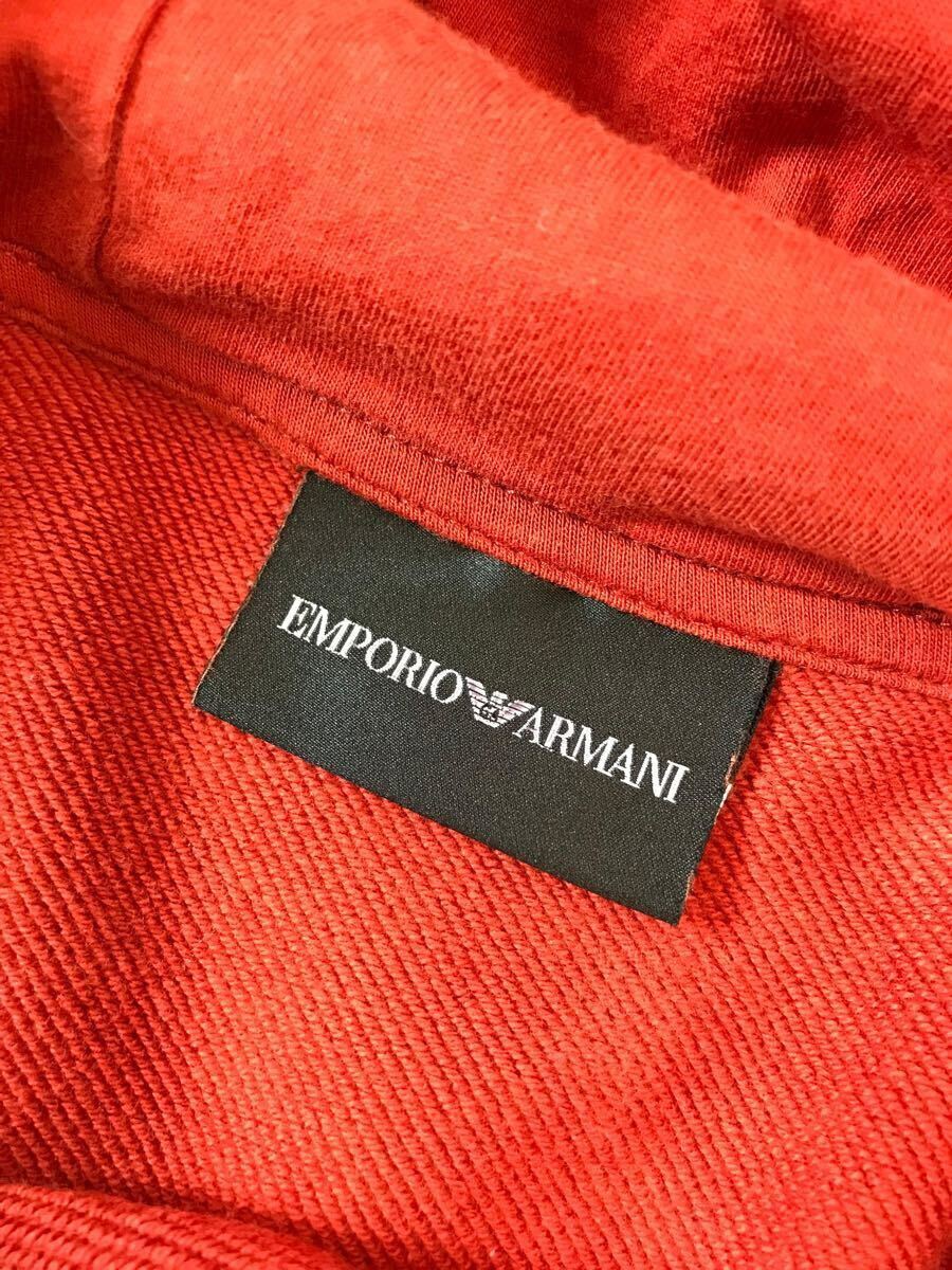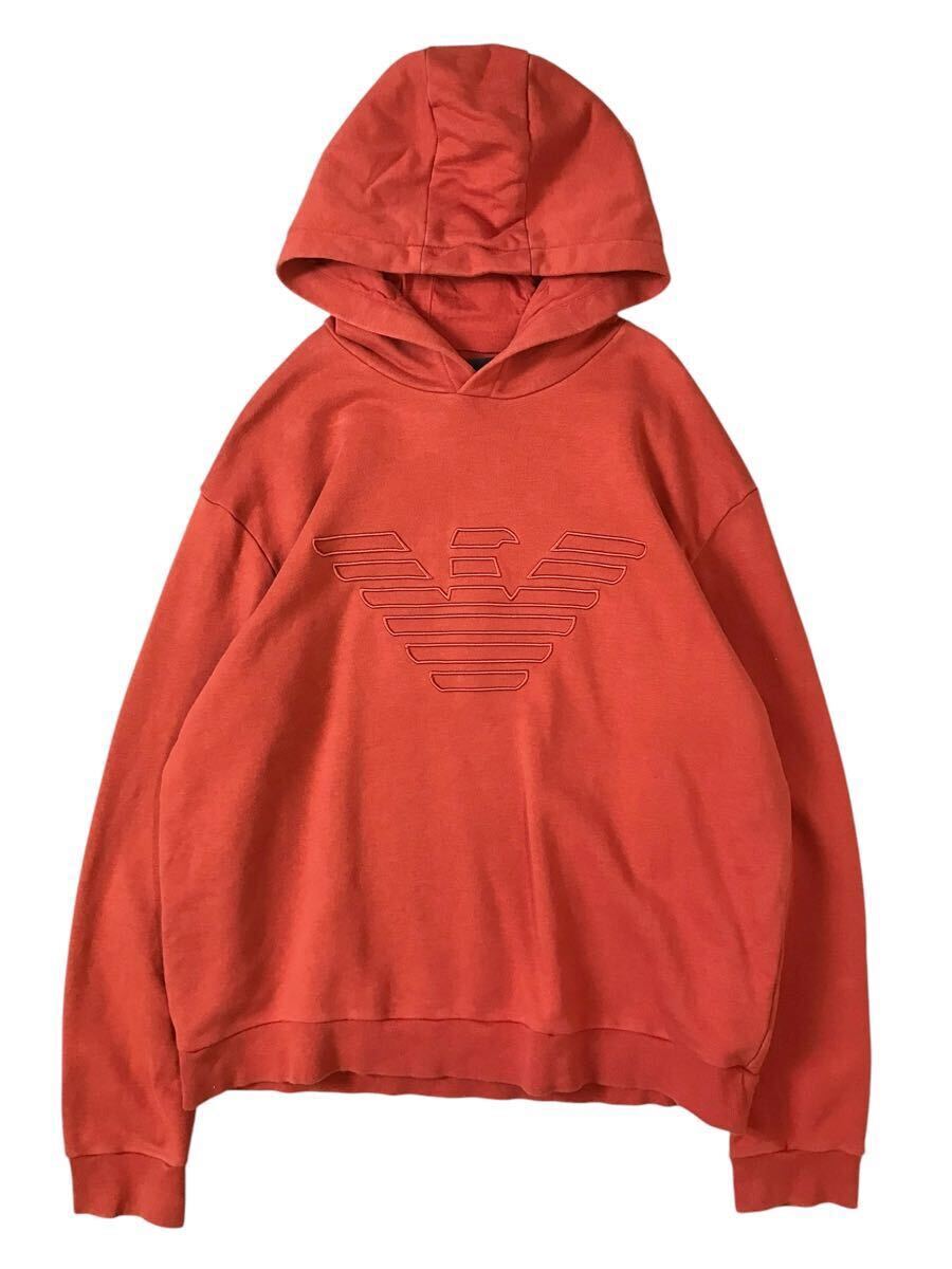 (D) EMPORIO ARMANI アルマーニ ロゴ 刺繍 コットン スウェット パーカー XXXL 3XL オレンジ系 プルオーバー (ma)