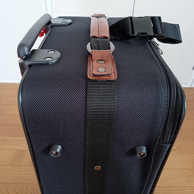 横面にハンドル、底足もついてるので横置き・可開閉部:ファスナータイプ