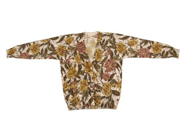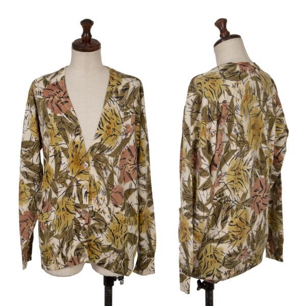 | ヨシエイナバYOSHIE INABA ウールシルクフラワープリントカーディガン ベージュマルチM位 |