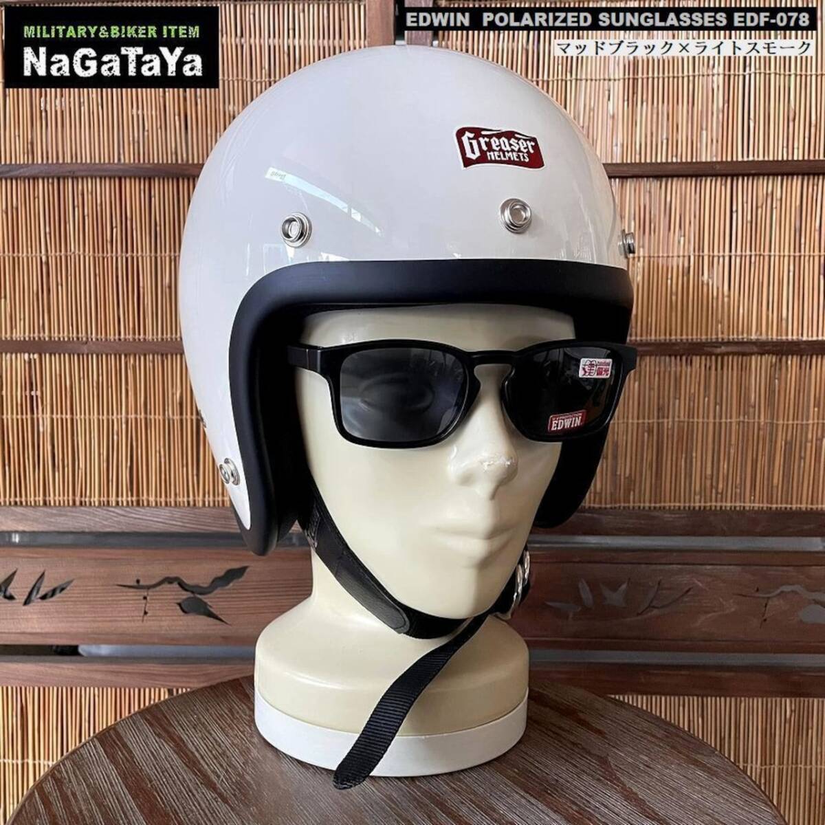 EDWIN エドウィン 偏光 ライトカラー スクエア サングラス EDF-078 マッド黒×ライトスモーク バイカーシェード ストリート 男女兼用