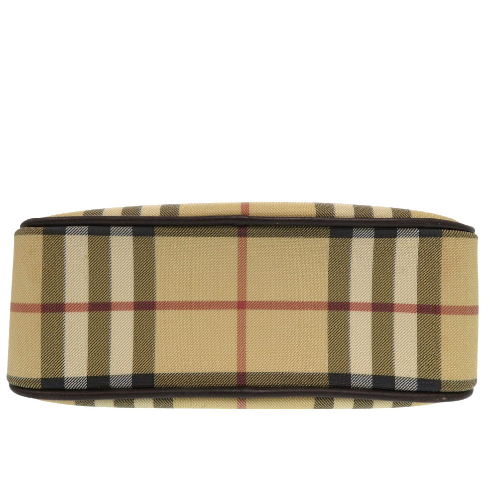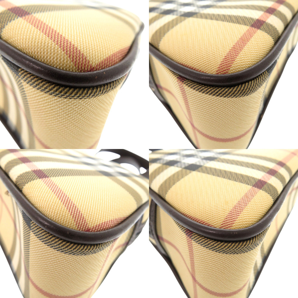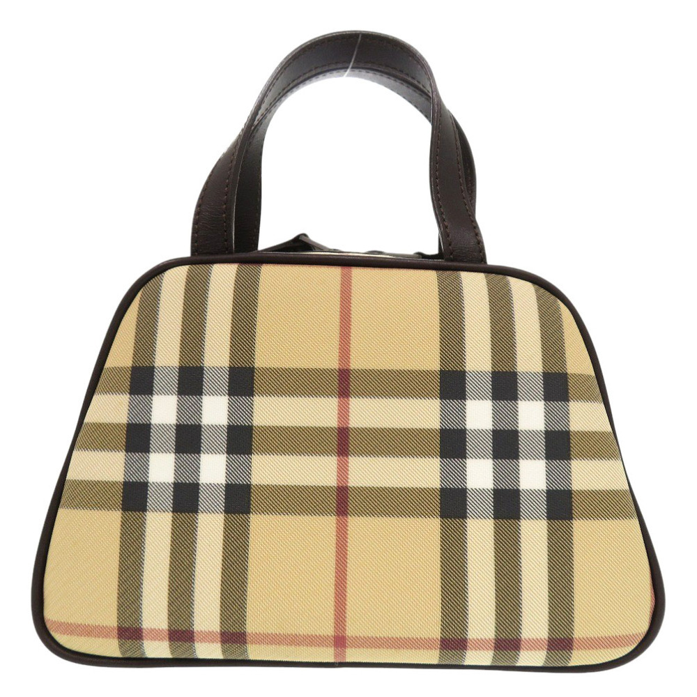 新品同様 バーバリー ノバチェック PVCコーティングキャンバス/レザー ベージュ ハンドバッグ 茶 0702 BURBERRY