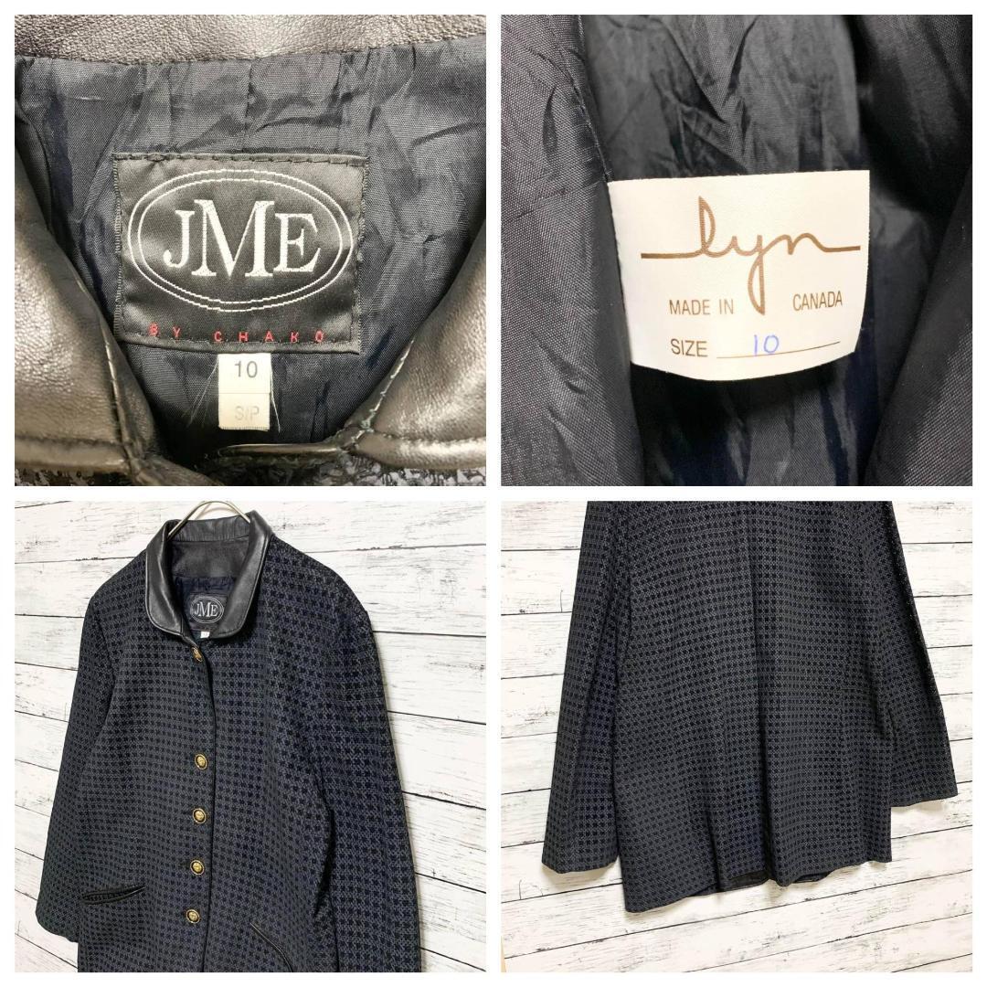 JME by Chako カナダ製 透かし彫り レザーコート 千鳥格子 【10】