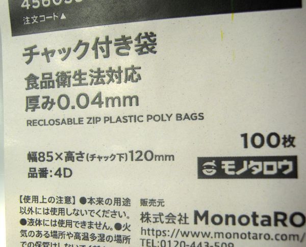 ★チャック付き袋★厚み0.04mmx100枚/未使用品