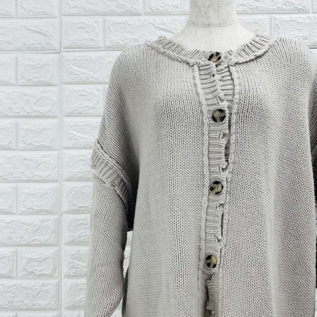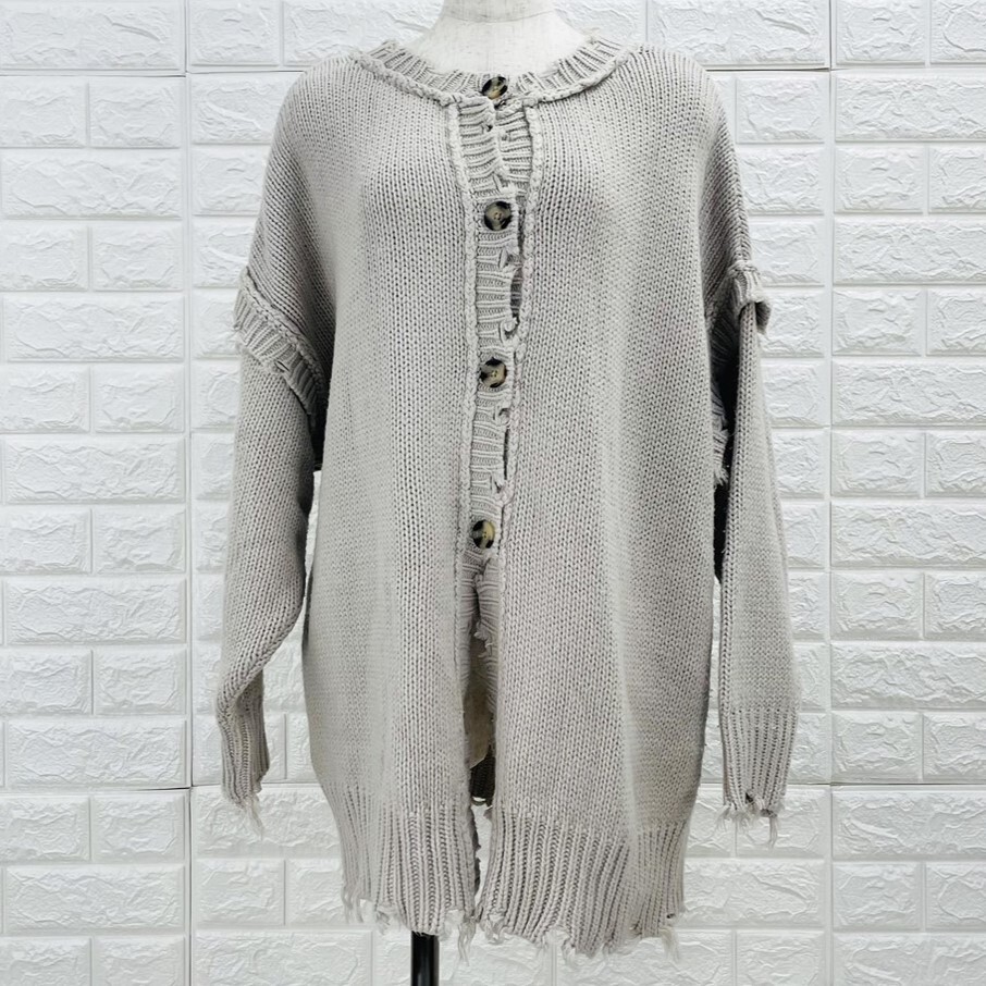 【A2383】GRL グレイル ニットカーディガン レディース グレー ダメージニット ゆったりシルエット 春秋 フリーサイズ