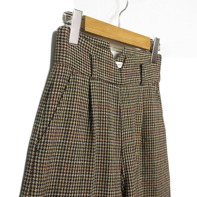 マウジー MOUSSY パンツ ワイド 千鳥格子 タック 0 茶 ブラウン 黒 ブラック レディース