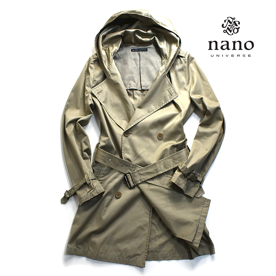 【美品】 ナノユニバース GROUND FLOOR コットン100◎!!! スタイリッシュな装いが秀逸 トレンチコート メンズM フーディー パーカー