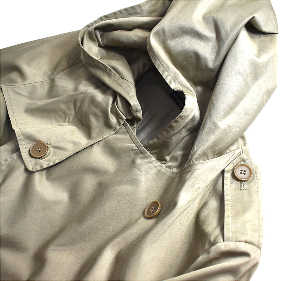 トレンチコートには珍しい、フード付きのアイテムとなり、シックなデザインながら個性的なアイテムとなります・・・