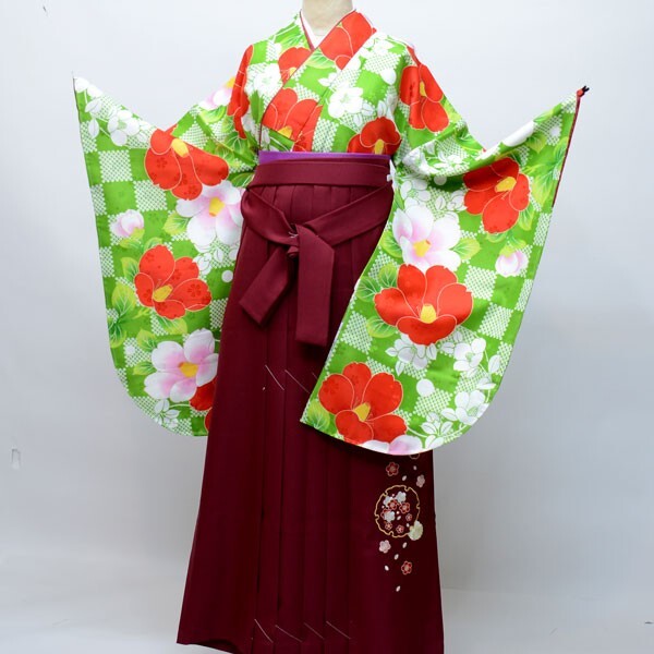 サイズ | もともと大人用のサイズですが、ジュニア用へサイズ直し致します。 着物、長襦袢の肩上げ腰上げ、袴を丈上げして以下のようなジュニアサイズ用に致します。 仕上がりに3日~4日程度の納期をいただきます。 価格は仕立て代込みのお値段です。 着物:身丈約105cm 袖丈76cm 裄丈60cm 袴:袴下80cm 適合身長:約135cm~143cm ※上記サイズはジュニア用の平均サイズでお直ししておりますが、ご要望のサイズに承ることが可能ですので、ご相談ください。 |