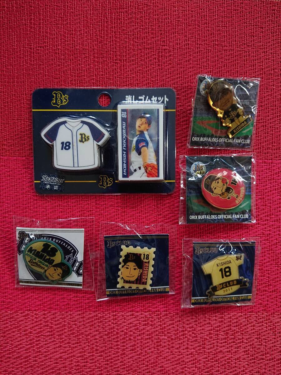 新監督 岸田護 消しゴムセット・ピンバッジ5種 オリックス・バファローズ
