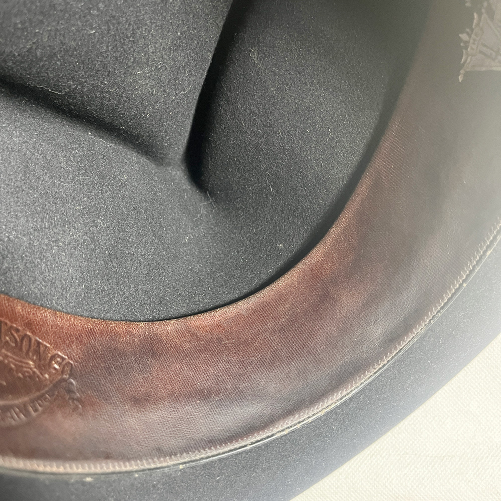 レザースベリにはテクスチャリング(あえてシワのようなデザイン)が施されたレザースベリを採用した個体には滅多にお目にかかれず、およそ100年以上前に作られた、正に博物館級のハット!