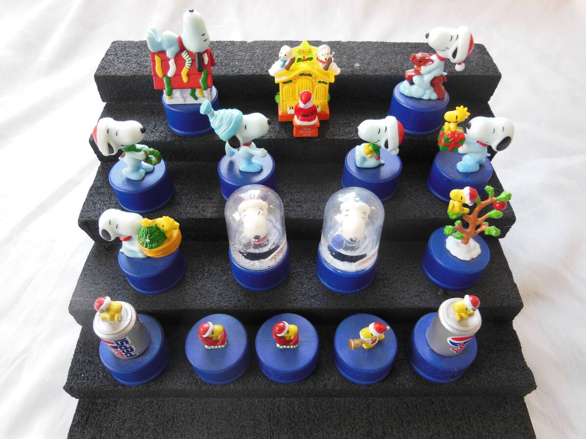 ペプシコーラに付いていた品でご覧の品々となります。希少のスノードームは2種揃っていますが、経年のため液体が気化