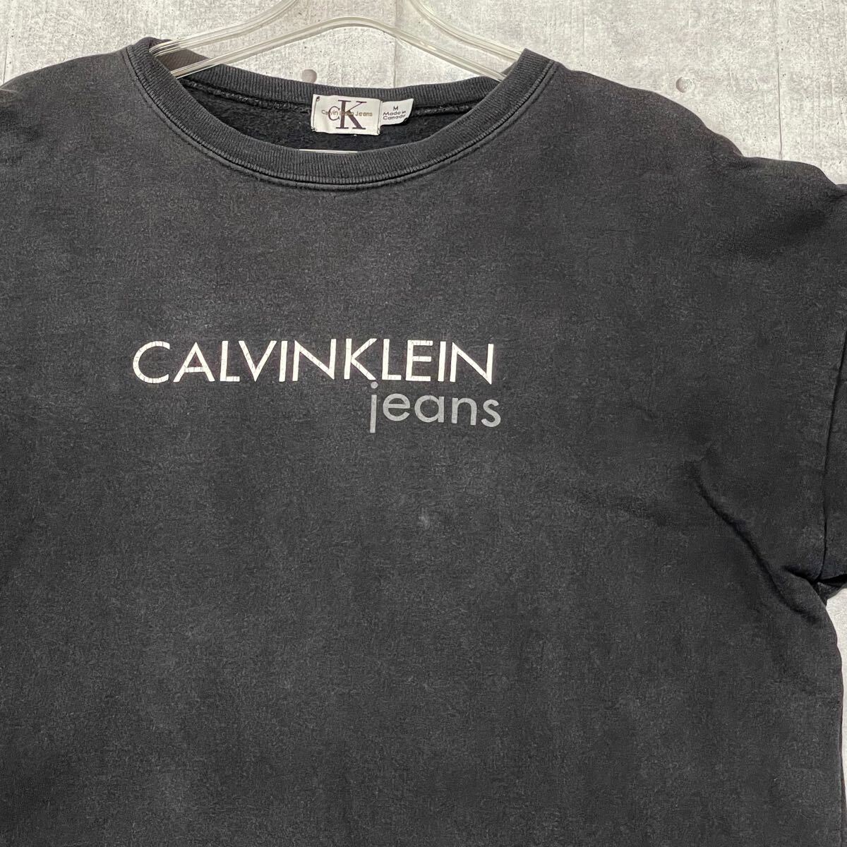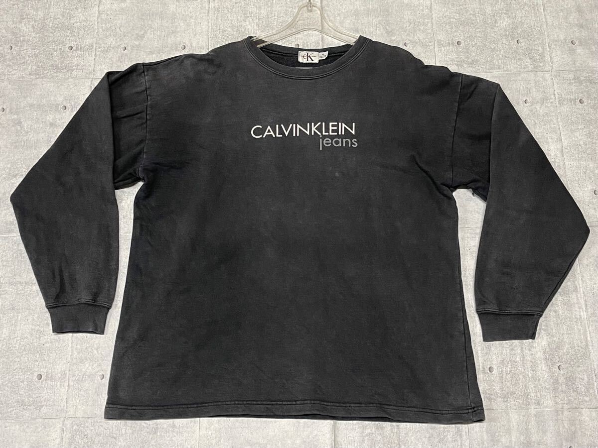 90s CALVINKLEIN jeans トレーナー カルバンクラインジーンズ  90年代 フェード 色あせ 退色 経年変色 vintage USA企画 スウェット YL687 ブラック ビッグロゴ デカロゴ CK jeans
