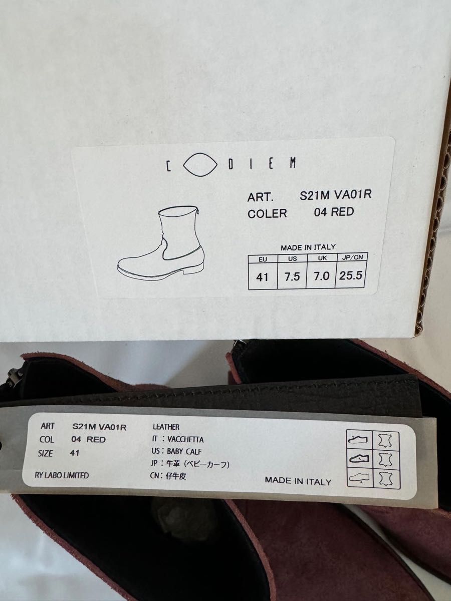 未使用 C-DIEM カルペディエム バックジップレザーブーツ 定価173,800円 41 guidi 赤 CARPE DIEM レザーシューズ 革靴 タグ付き メンズ