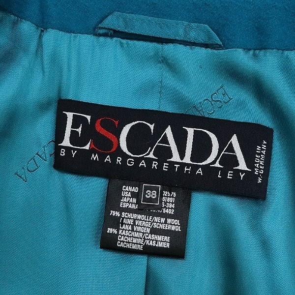 | ヴィンテージ◆ESCADA エスカーダ カシミヤ混 ウール ダブル ジャケット ターコイズブルー 38 | |