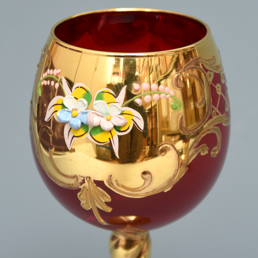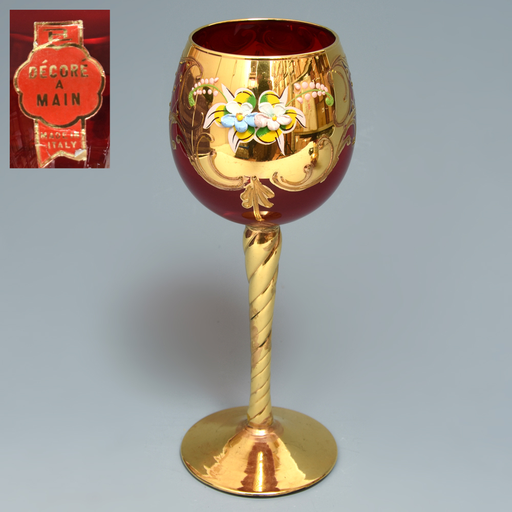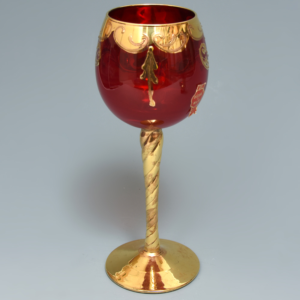 ヴェネチアガラス レッド ワイングラス 約19㎝ ゴールド ハイエナメル 金彩 ベネチアンガラス |