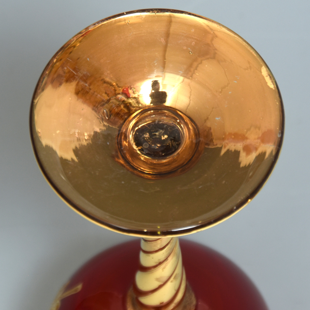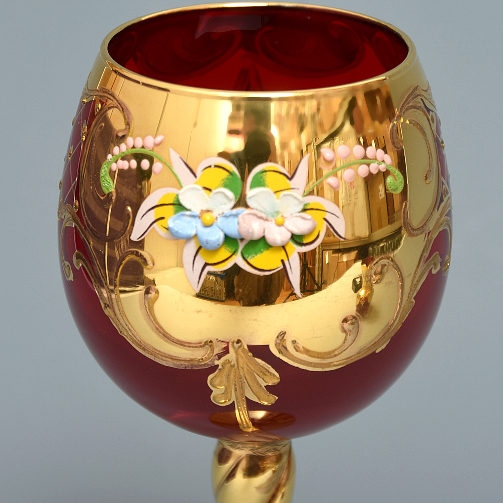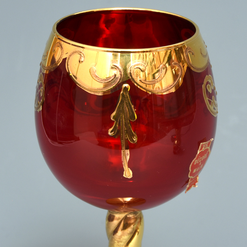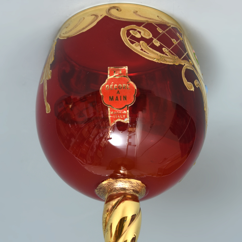ヴェネチアガラス レッド ワイングラス 約19㎝ ゴールド ハイエナメル 金彩 ベネチアンガラス |