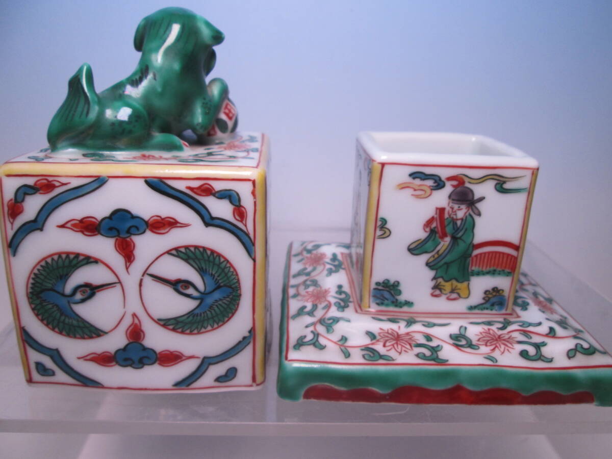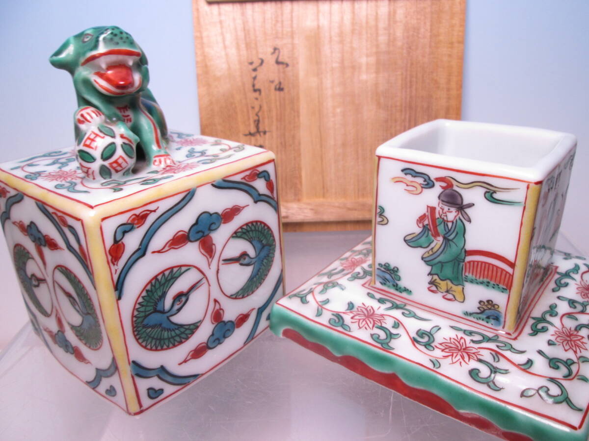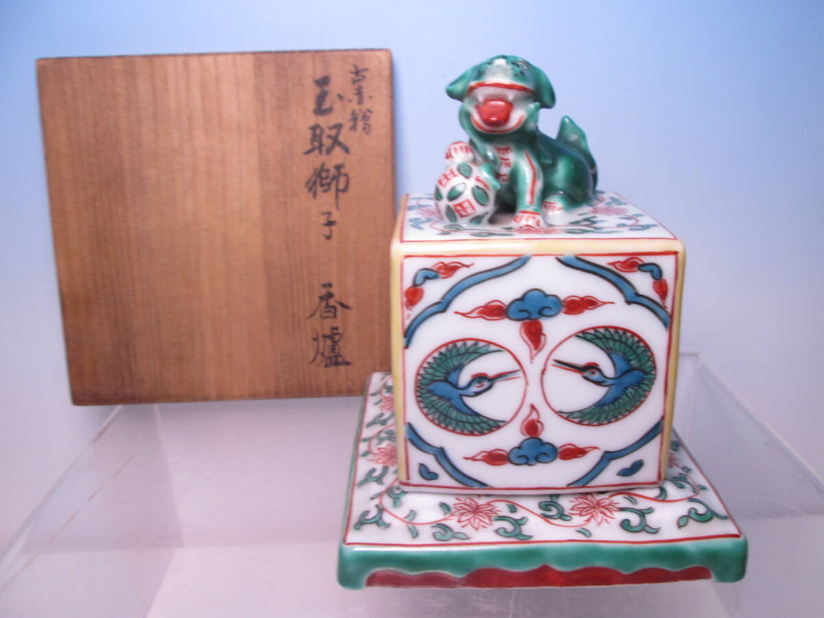 ☆九谷 須田菁華 古赤絵 玉取獅子 香炉 共箱 茶道具/茶懐石