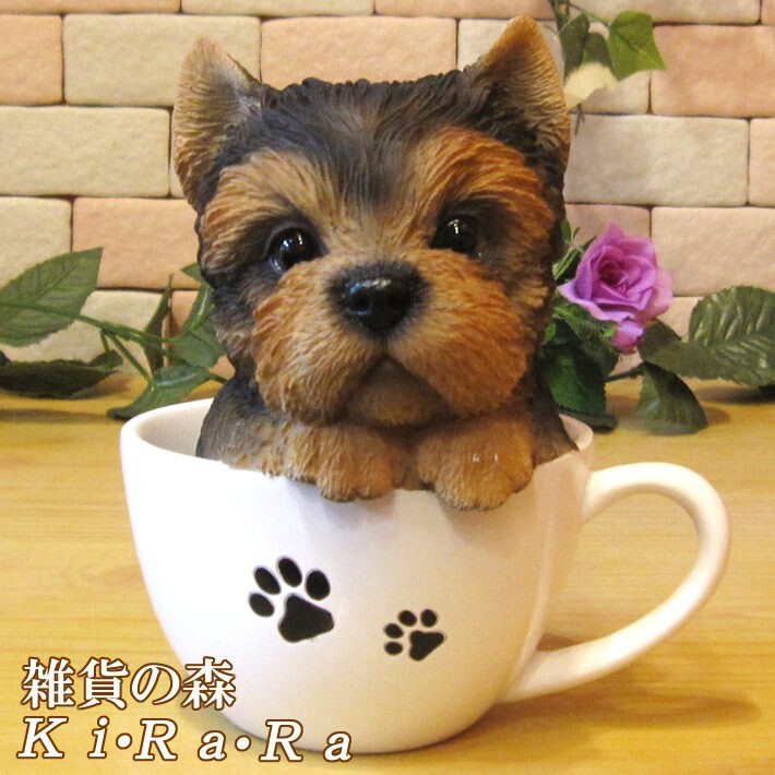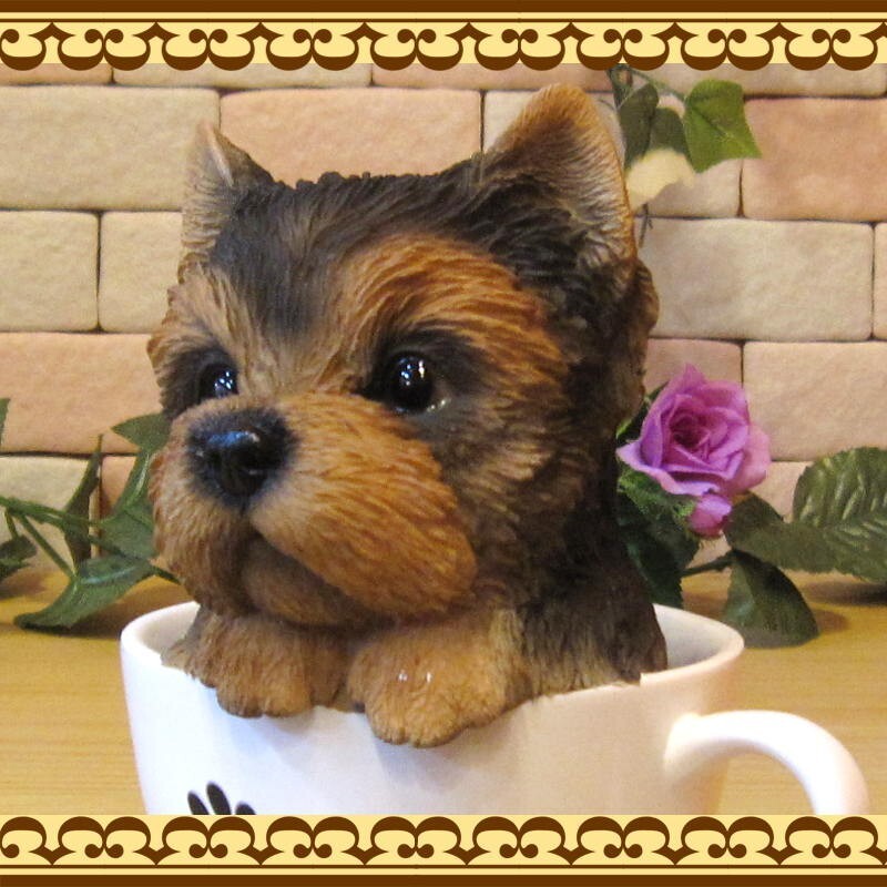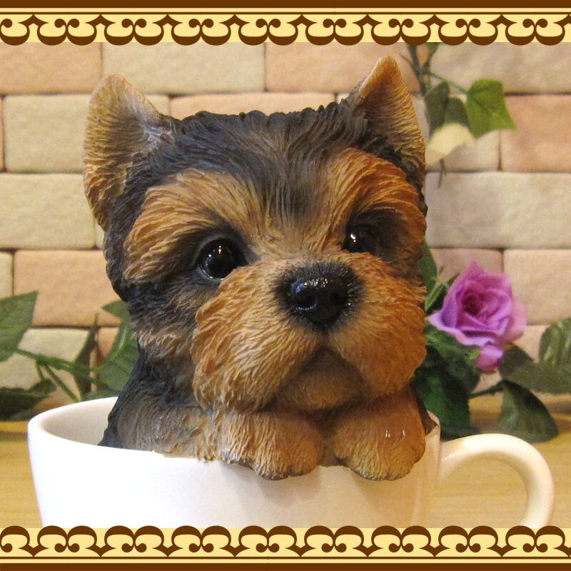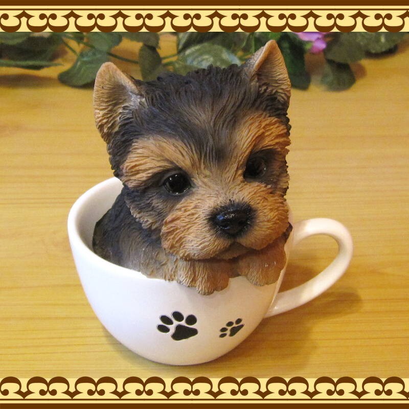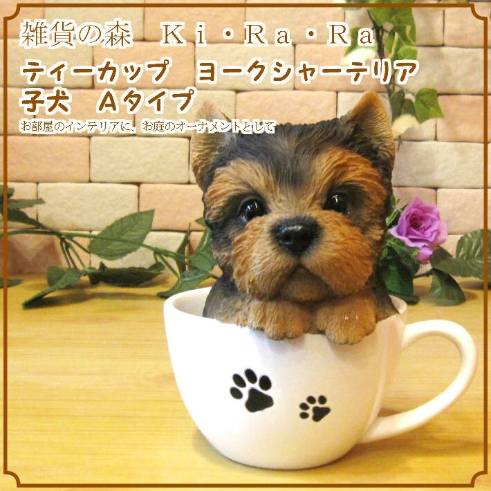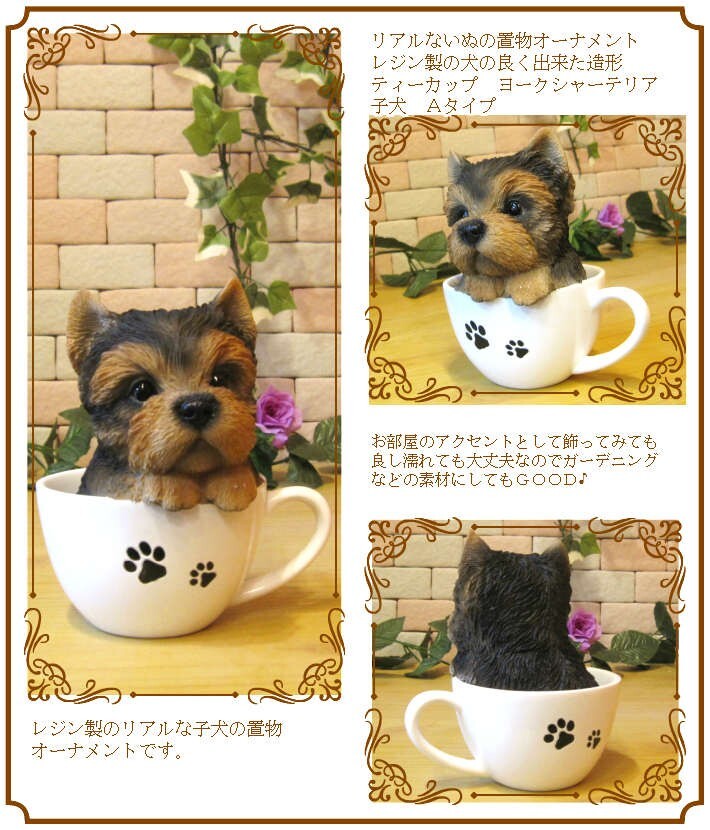 置物 動物 可愛い 犬の置物 ヨークシャーテリア ティーカップドッグ Aタイプ ヨーキー リアル フィギュア ガーデニング