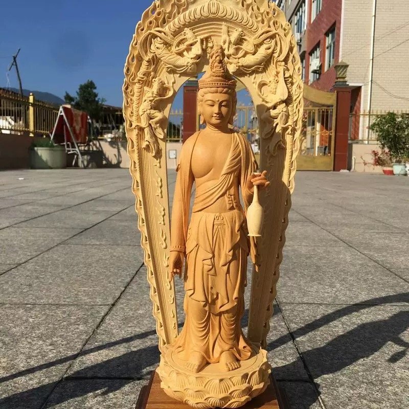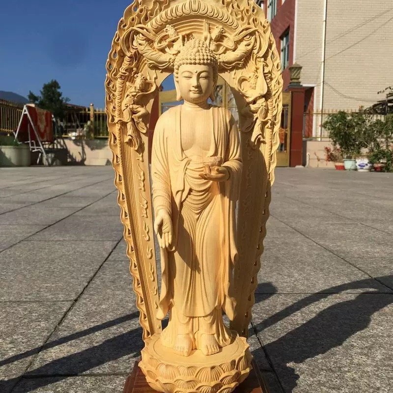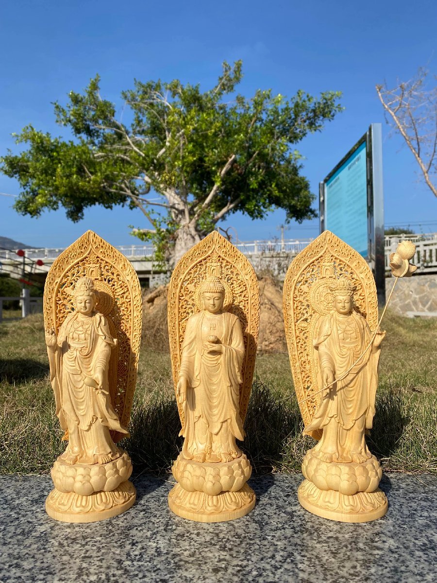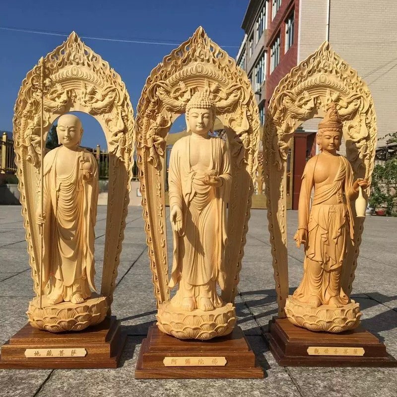 婆娑三聖 観世音菩薩 ★地蔵菩薩像 ★ 阿弥陀仏三尊 彫刻工芸品 仏教美術 職人手作り 檜木 高さ 47.5cm