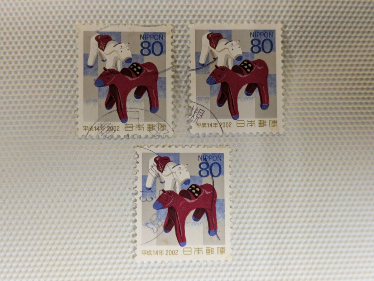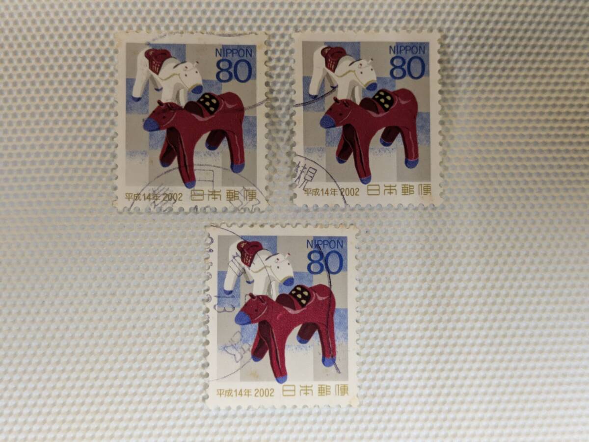 年賀切手 平成14年用 2001.11.15 吉良の赤馬 80円切手 単片 使用済 3枚