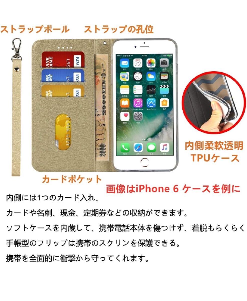 iphone7 plus ケース 手帳型 内蔵マグネット カードポケット スタンド機能 PUレザー 人気 おしゃれ5色-ゴールド