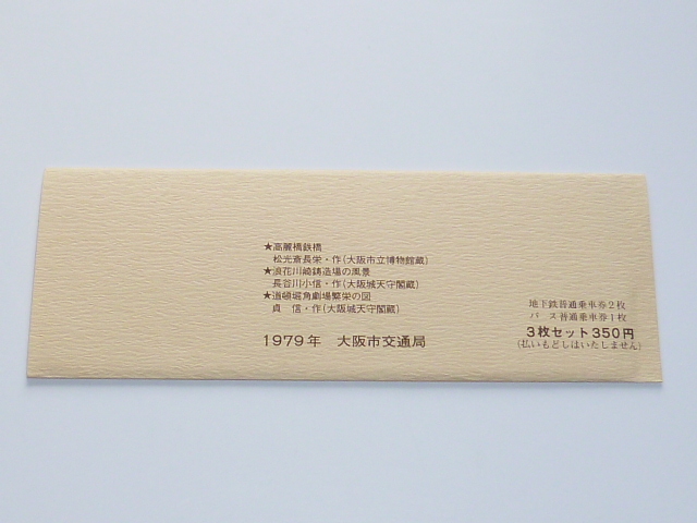 ※ 記念切符★大阪市制90周年記念乗車券★大阪市交通局★1979年6月★3枚 ※